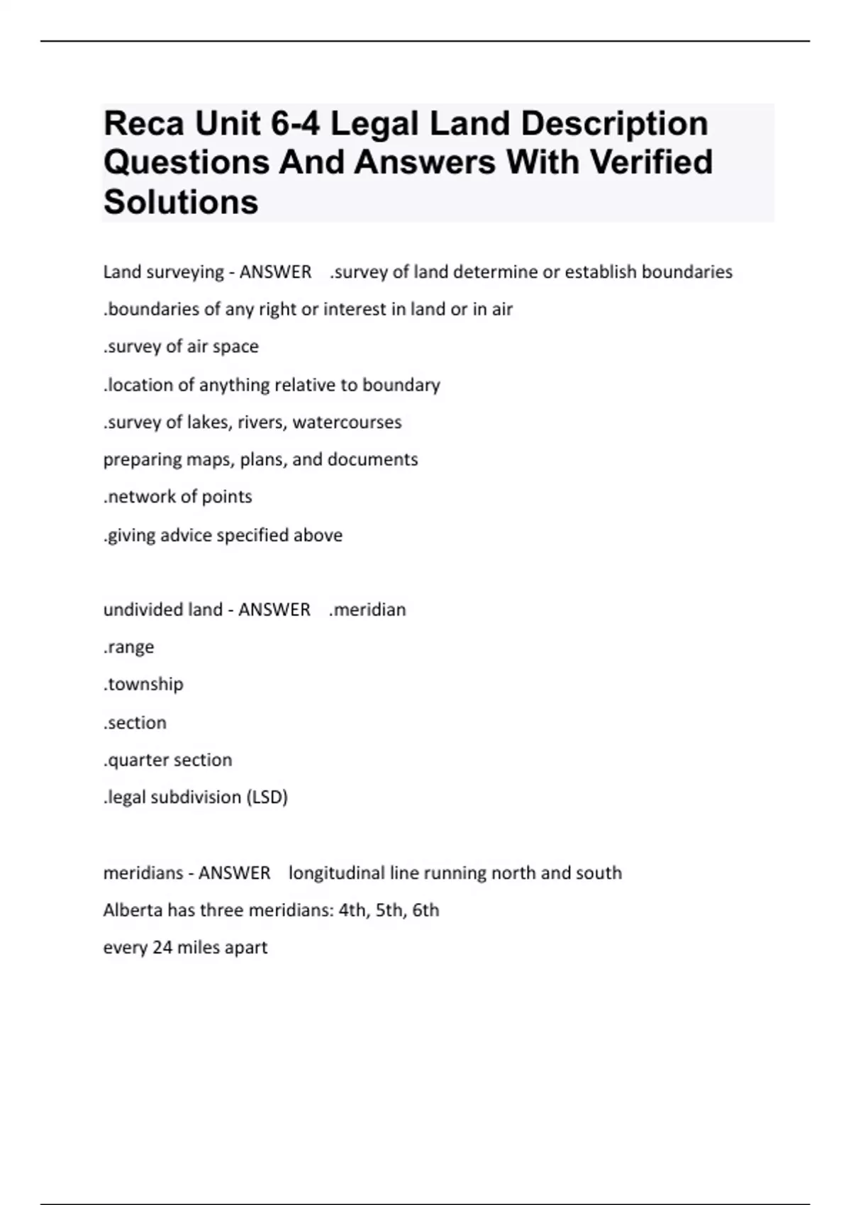 Reca Unit 6-4 Legal Land Description Questions And Answers With Verified Solutions.