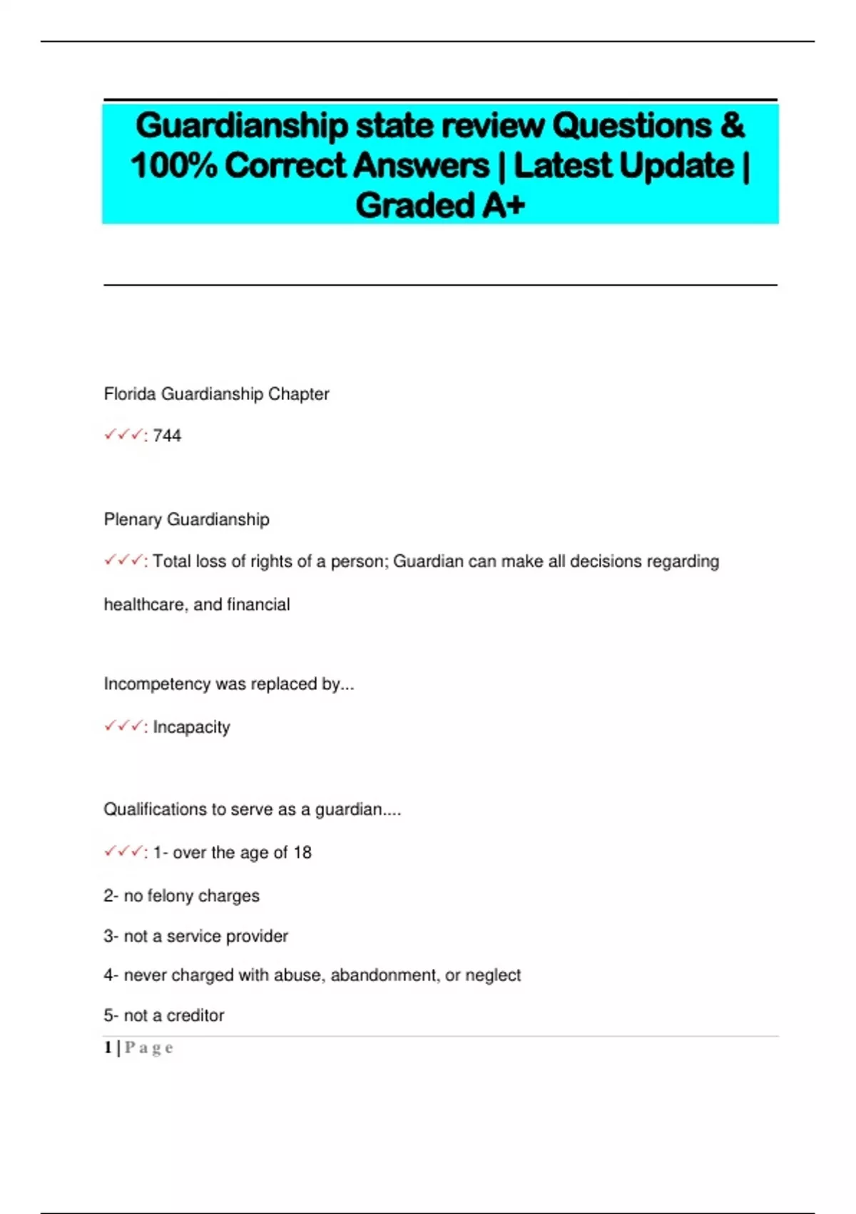 Guardianship state review Questions & 100% Correct Answers | Latest Update | Graded A+
