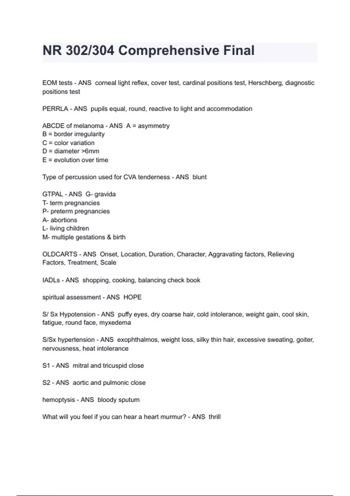 NR 302 final review Exam 2024/2025 Questions With Completed Solutions. ALL BUNDLED HERE!!!