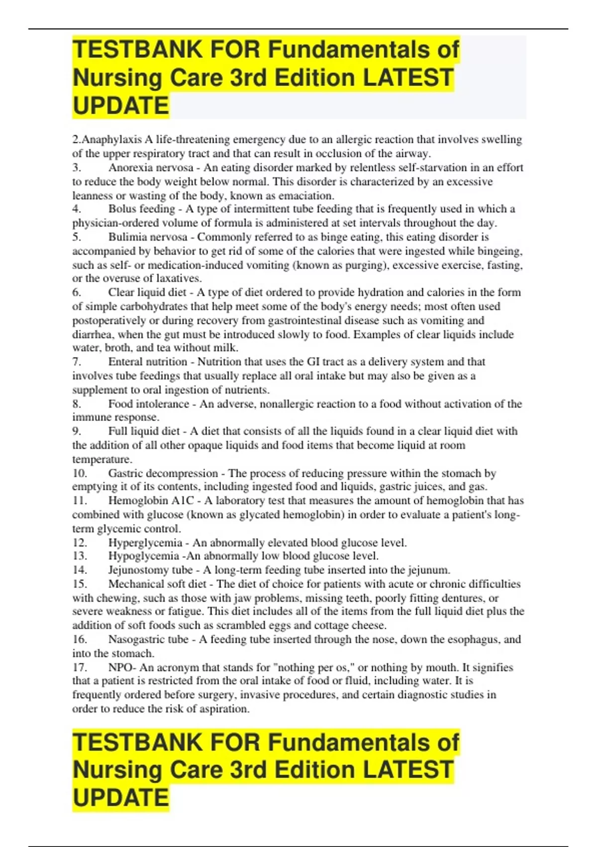 TESTBANK FOR Fundamentals of Nursing Care 3rd Edition LATEST UPDATE