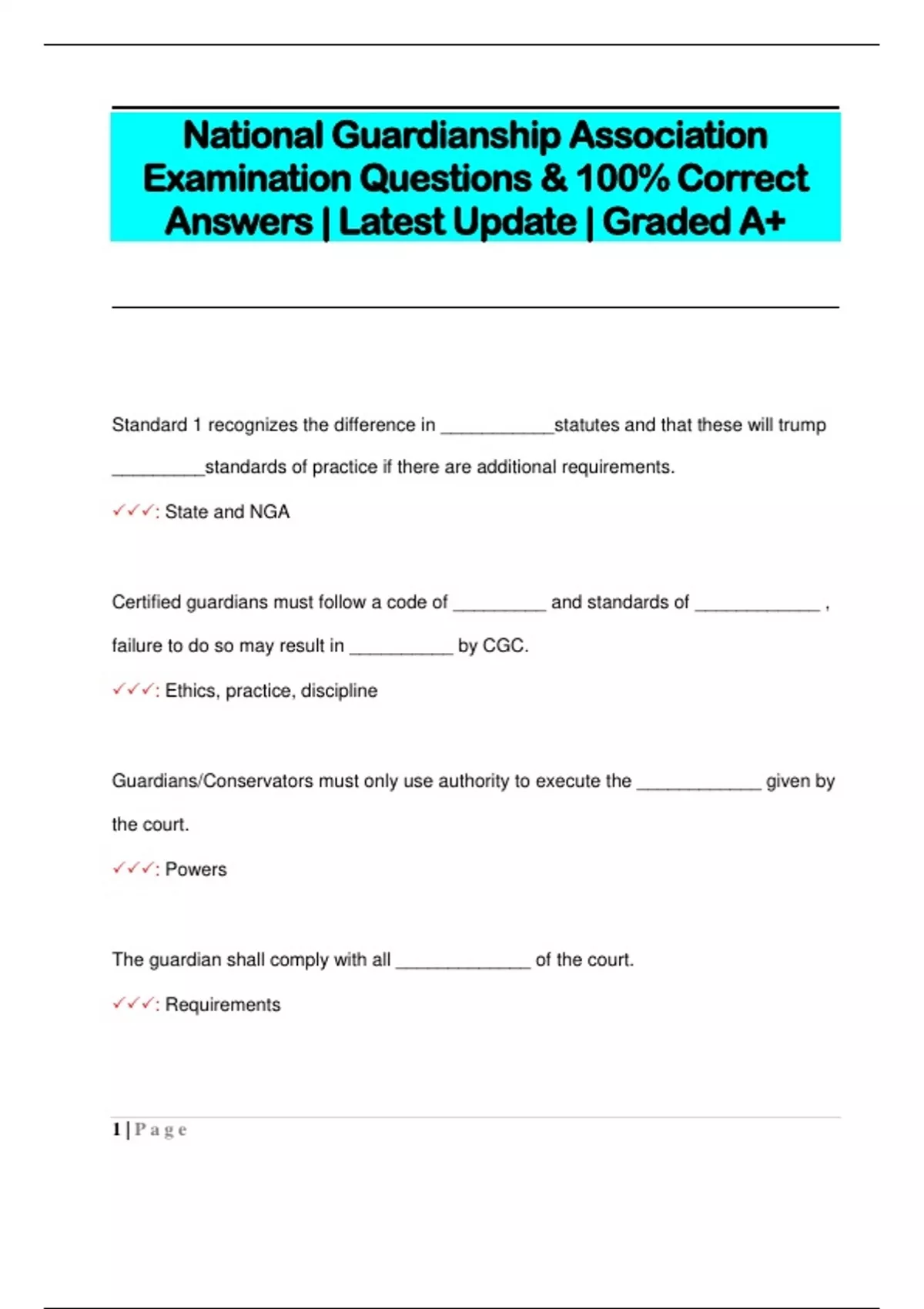 National Guardianship Association Examination Questions & 100% Correct Answers | Latest Update | Graded A+