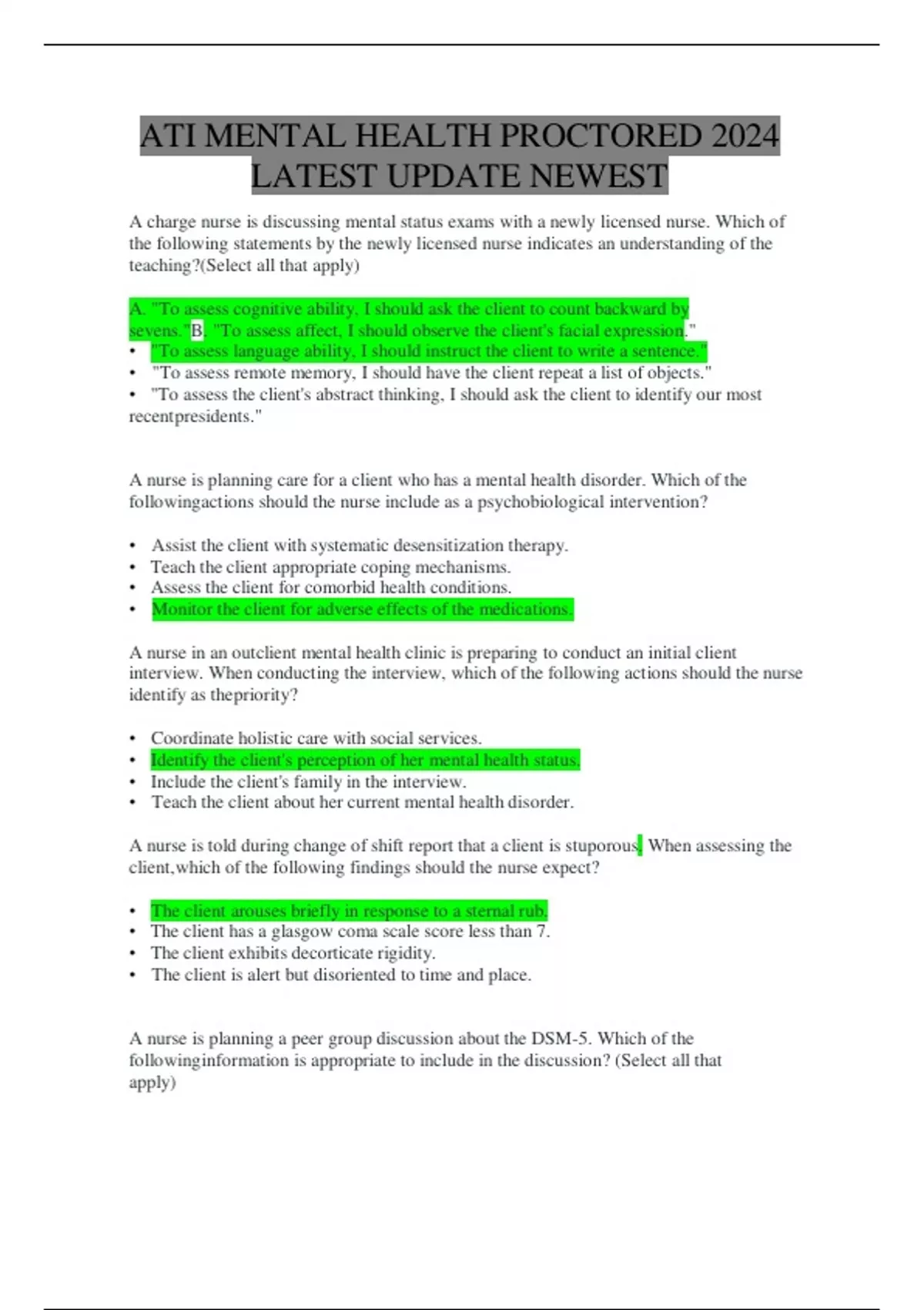 ATI MENTAL HEALTH PROCTORED 2024 LATEST UPDATE NEWEST