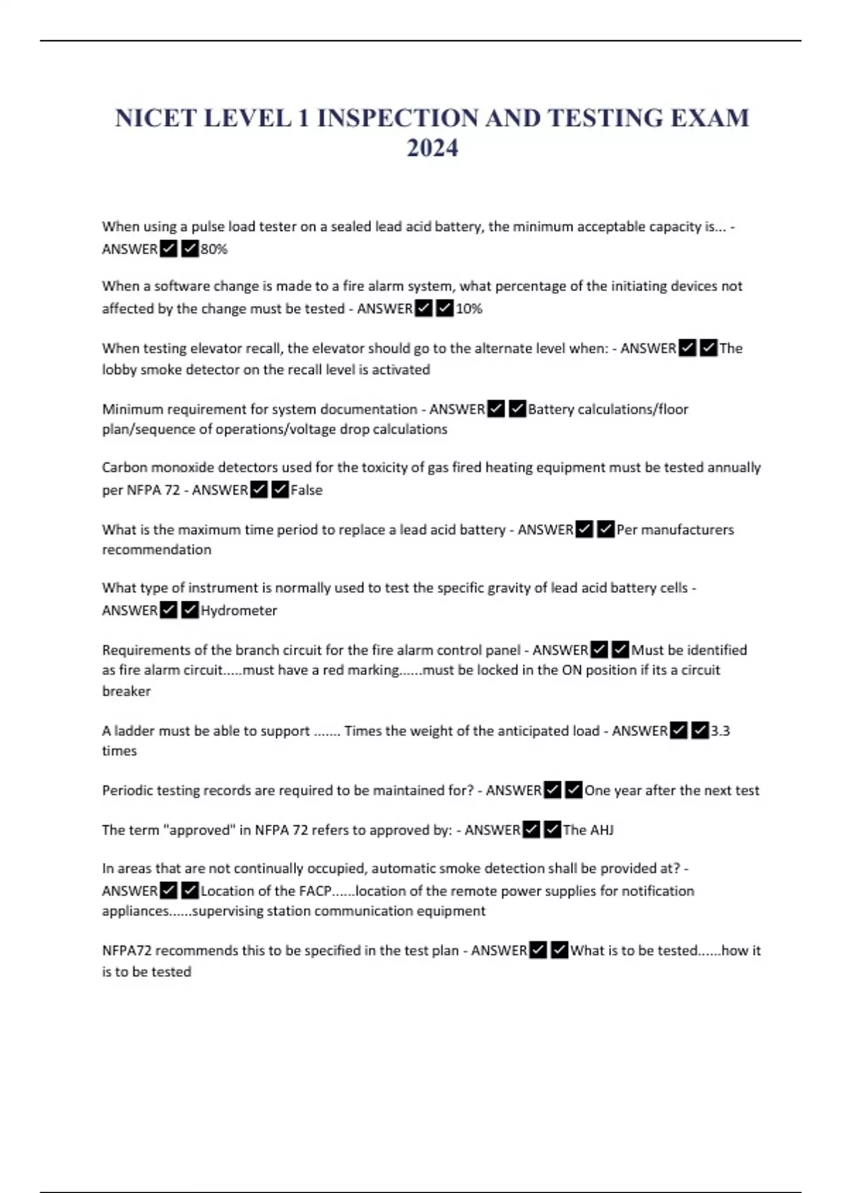 NICET LEVEL 1 INSPECTION AND TESTING EXAM 2024