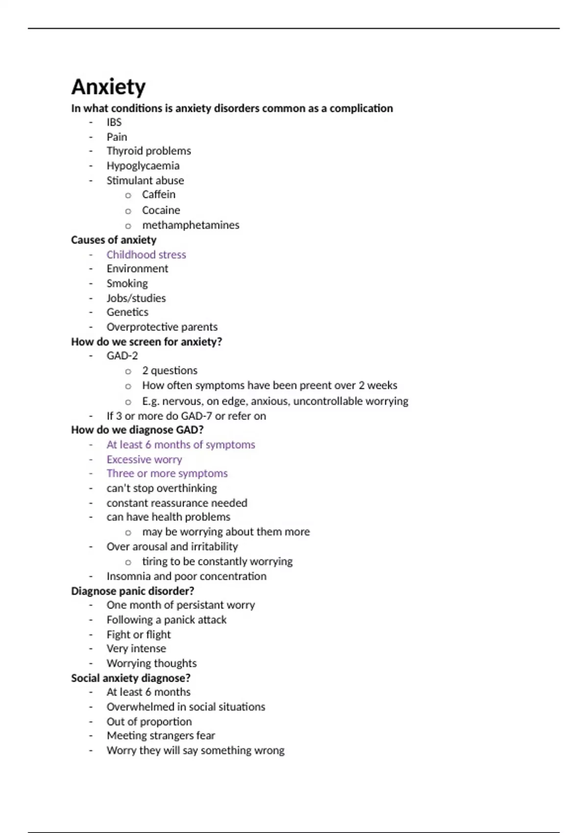 Anxiety summary