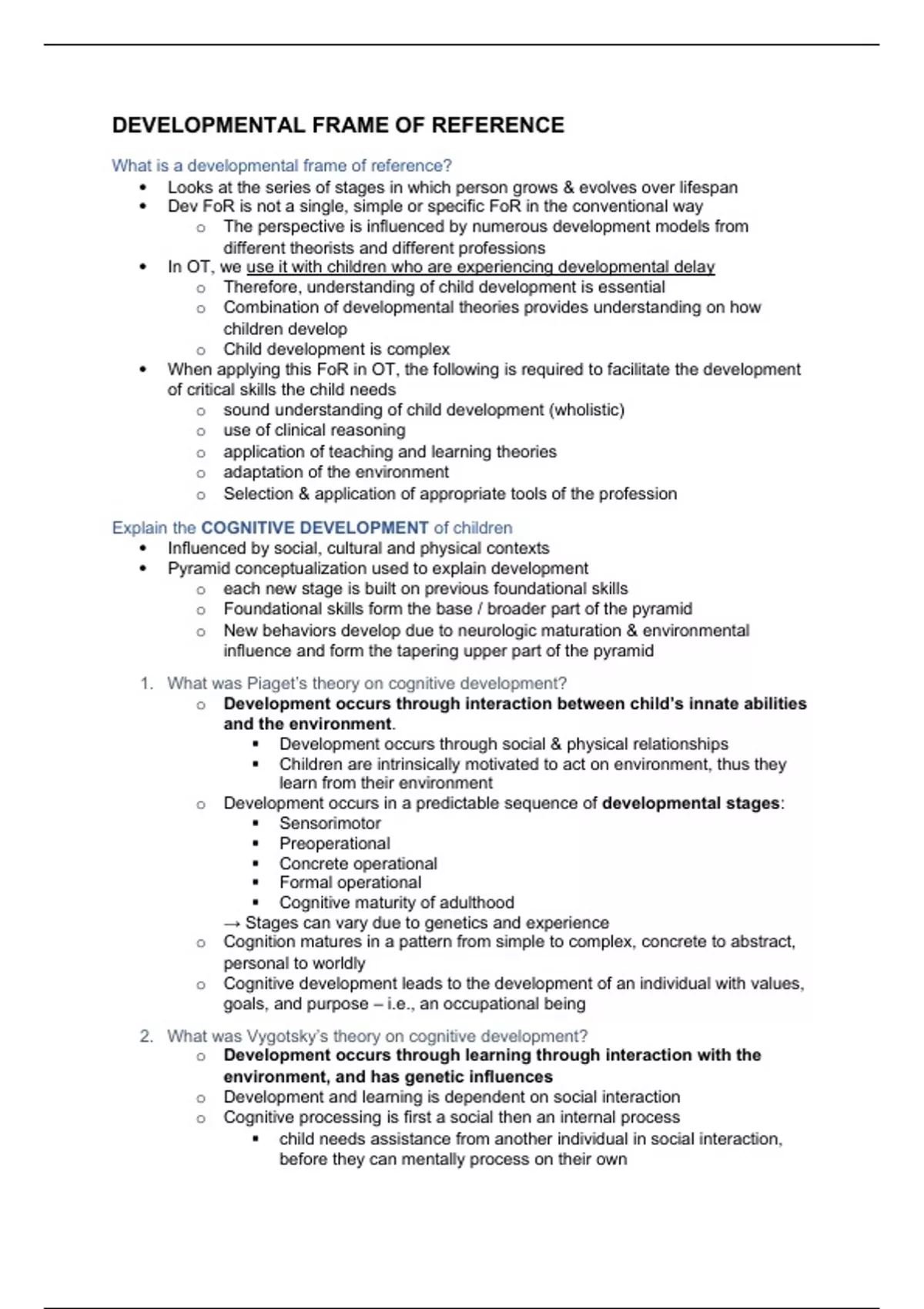 1. What was Piaget’s theory on cognitive development?