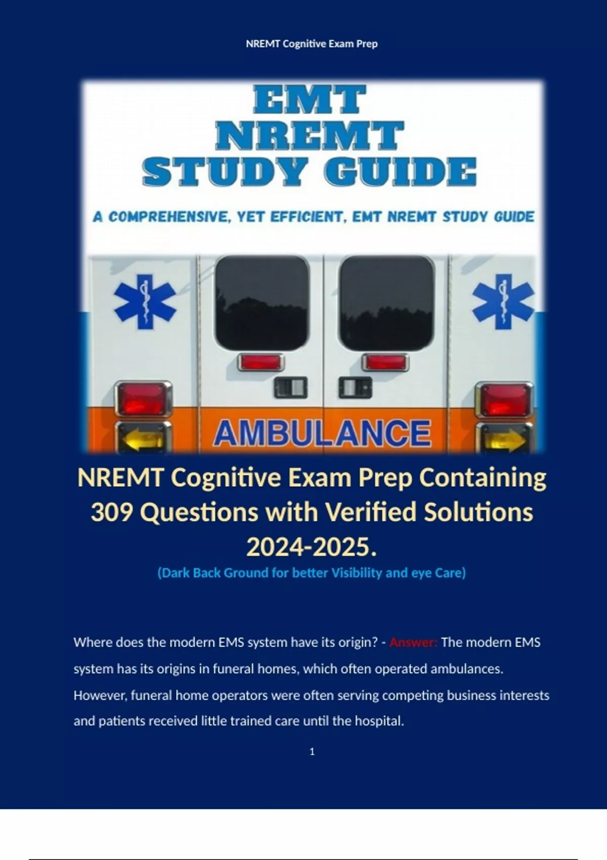 NREMT Cognitive Exam Prep Containing 309 Questions with Verified Solutions .