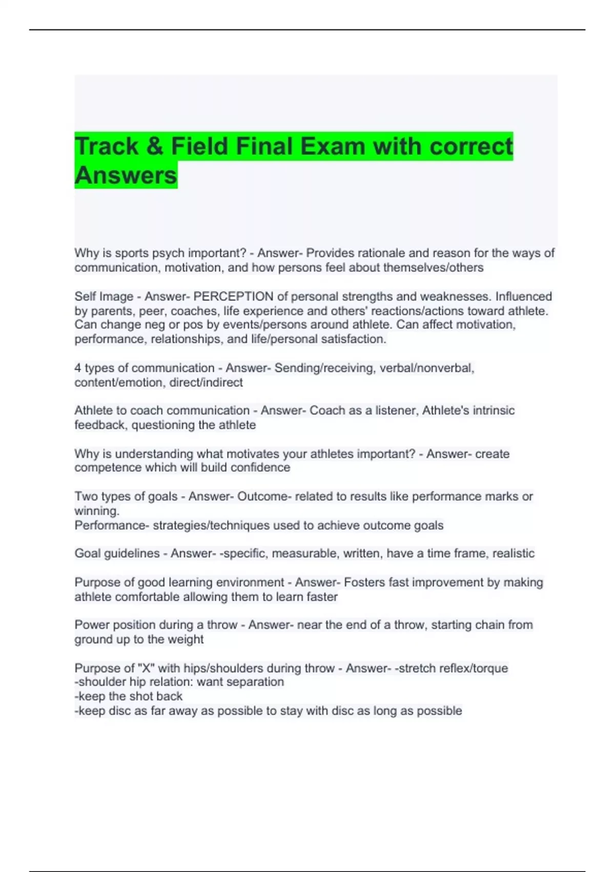 Track & Field Final Exam with correct Answers 2024