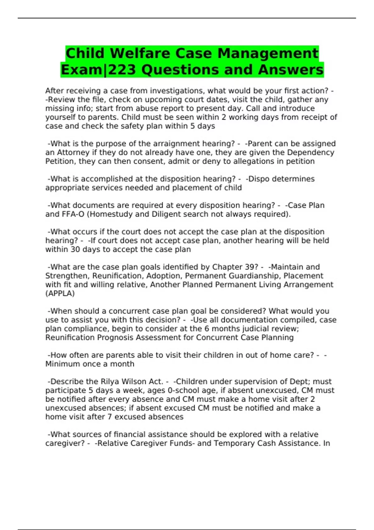 Child Welfare Case Management Exam|223 Questions and Answers