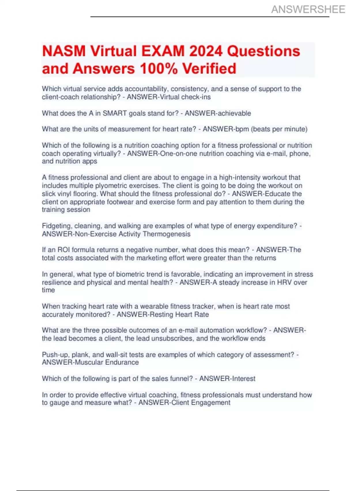 NASM Virtual EXAM 2024 Questions and Answers 100 Verified Answers||Latest 2024||ANSWERSHEET