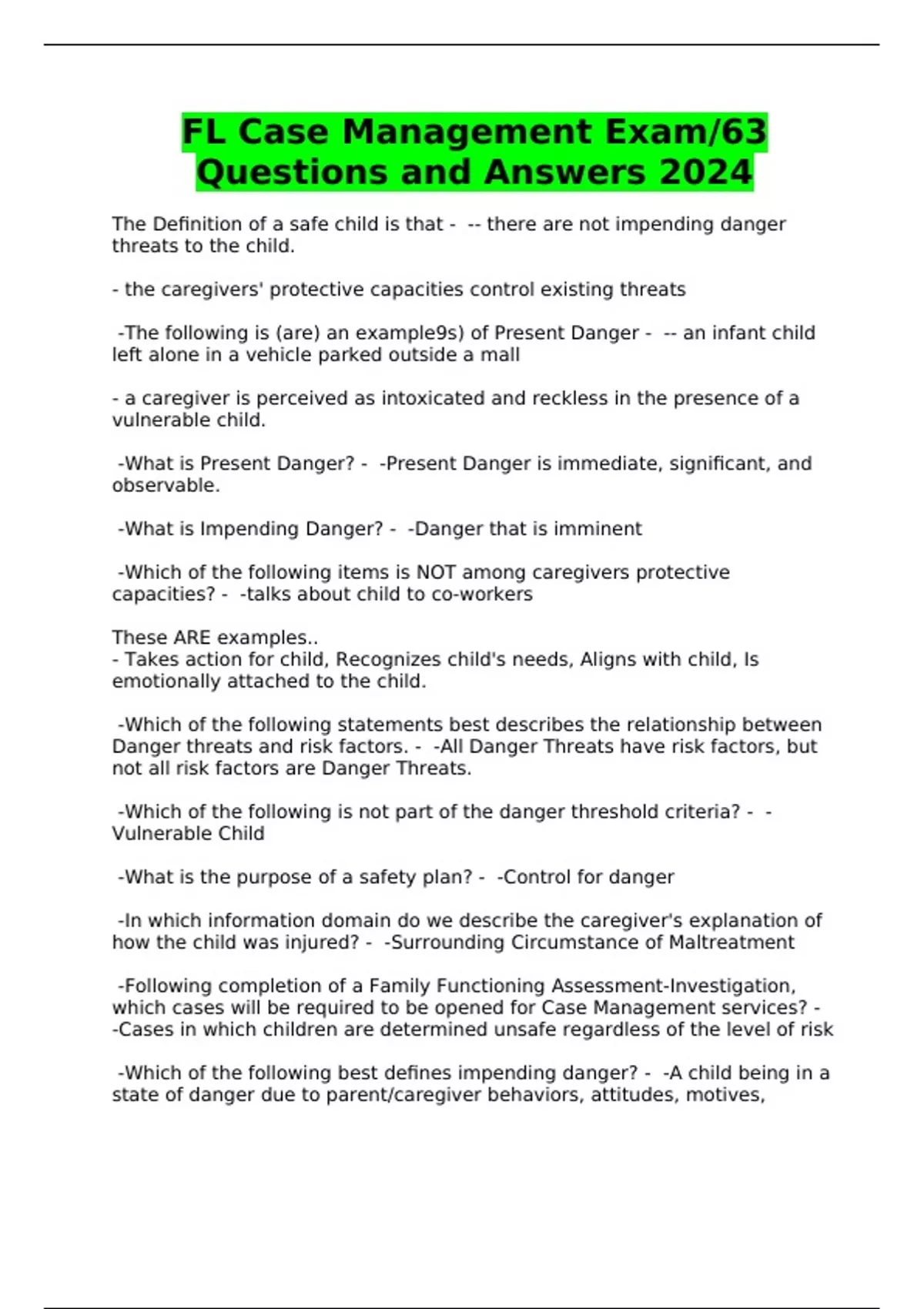 FL Case Management Exam/63 Questions and Answers 2024