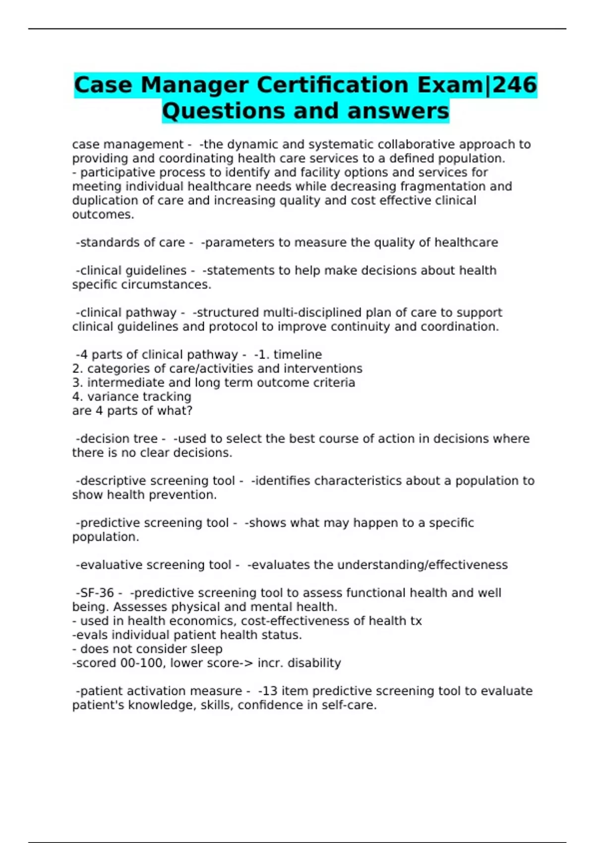 Case Manager Certification Exam|246 Questions and answers