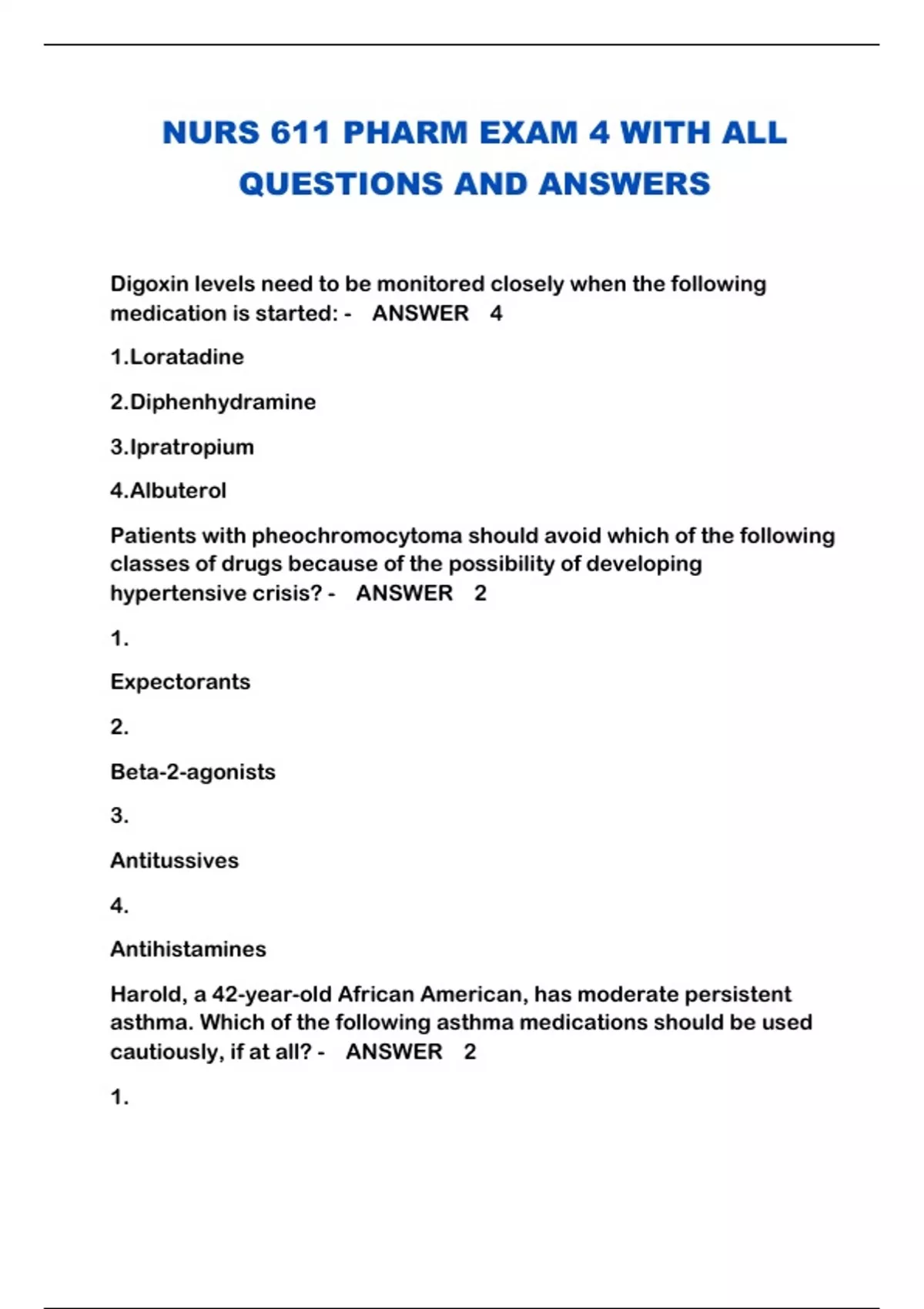 NURS 611 PHARM EXAM 4 WITH ALL