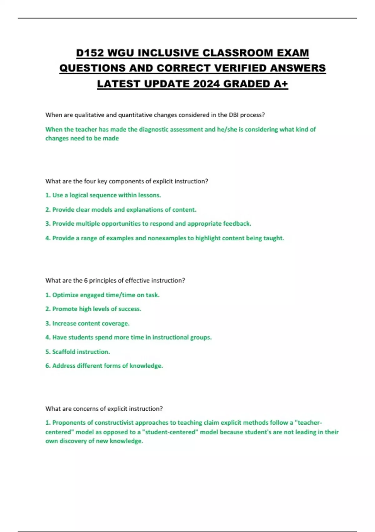 D152 WGU INCLUSIVE CLASSROOM EXAM QUESTIONS AND CORRECT VERIFIED ANSWERS LATEST UPDATE 2024 GRADED A+