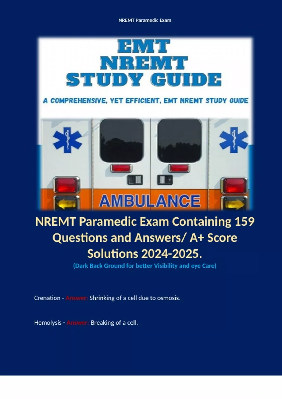 NREMT Paramedic Exam Containing 159 Questions and Answers/ A+ Score Solutions .