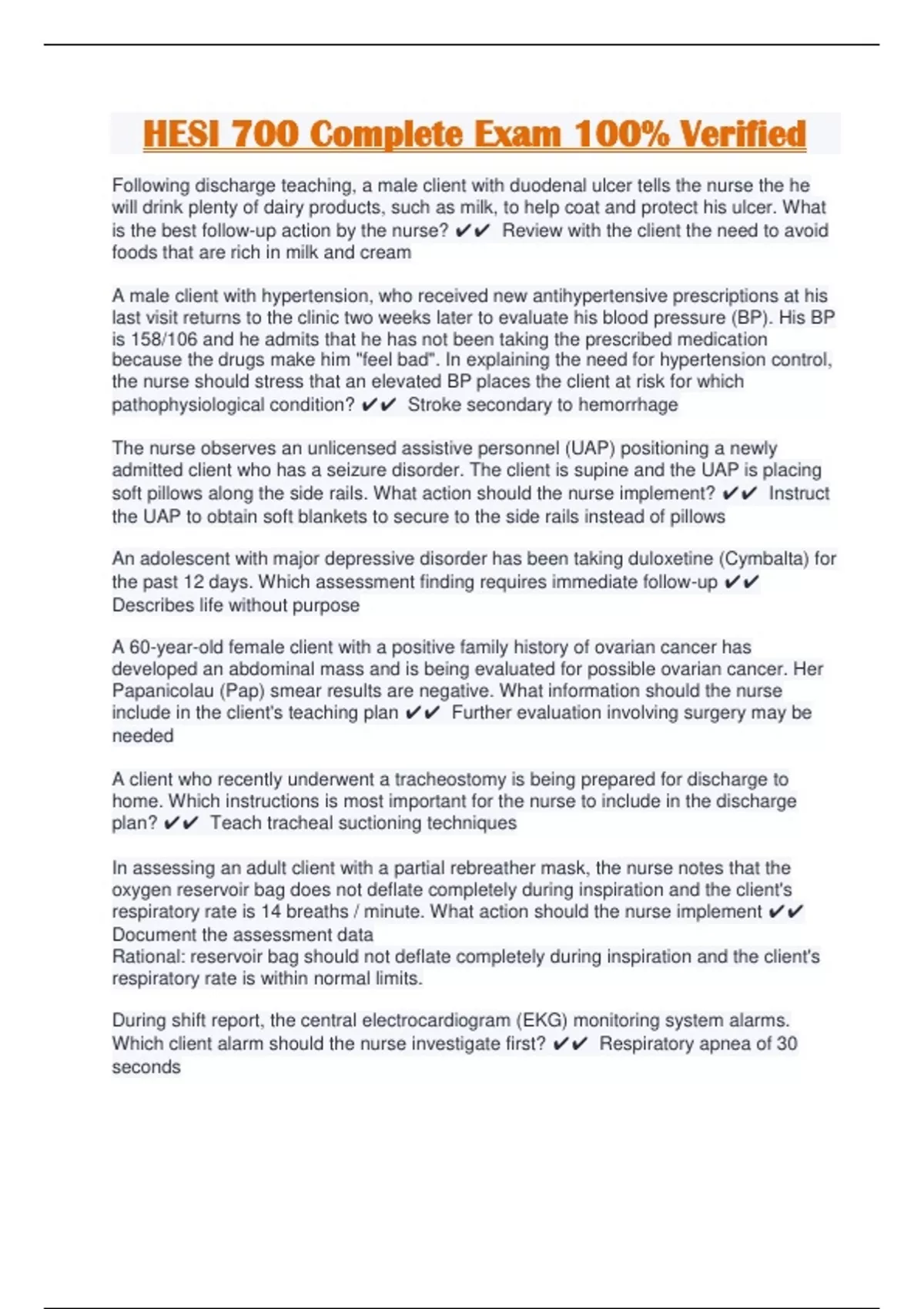 HESI 700 Complete Exam 100% Verified