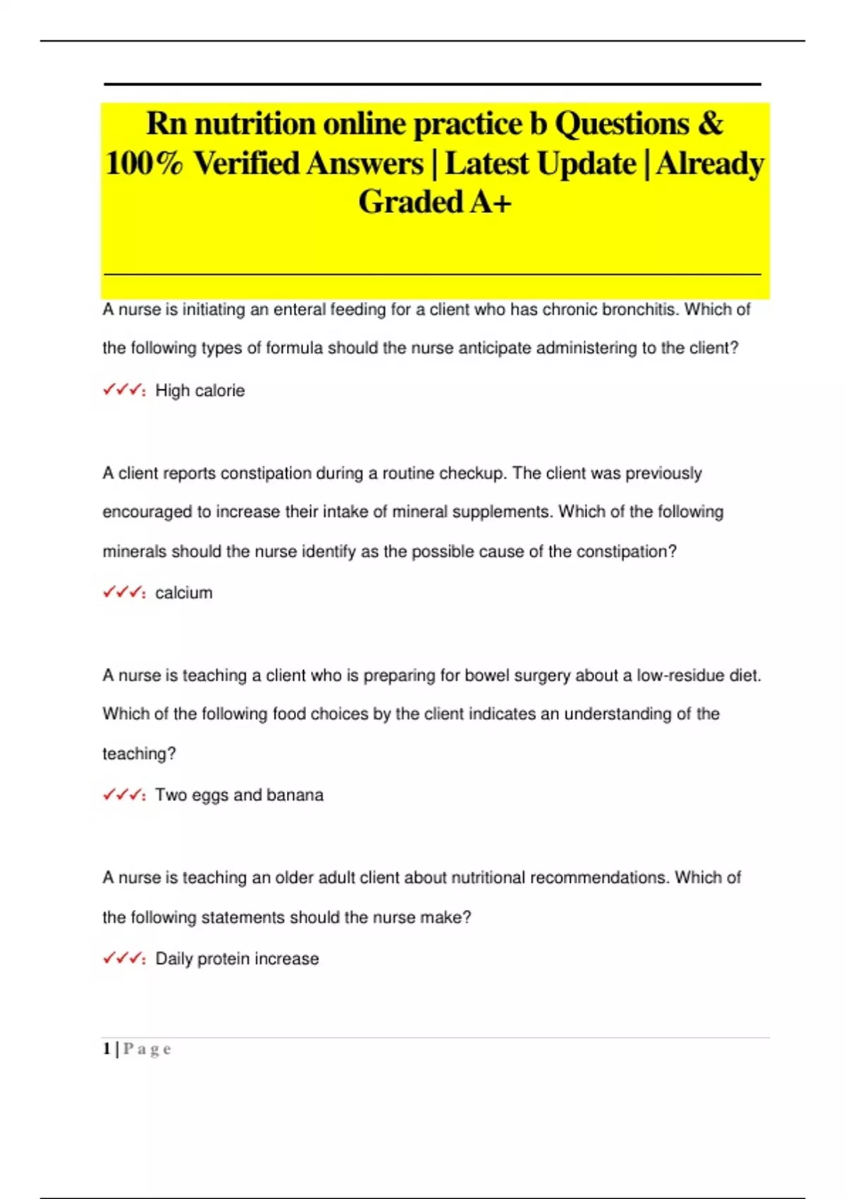 Rn nutrition online practice b Questions & 100% Verified Answers | Latest Update | Already Graded A+