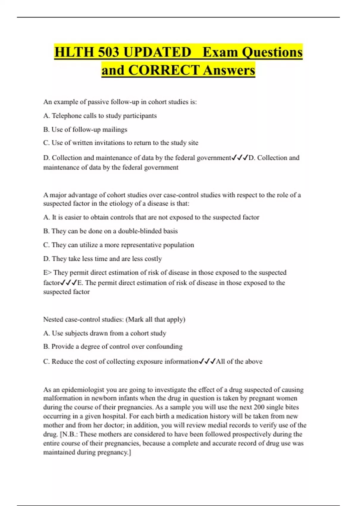 HLTH 503 UPDATED Exam Questions and CORRECT Answers