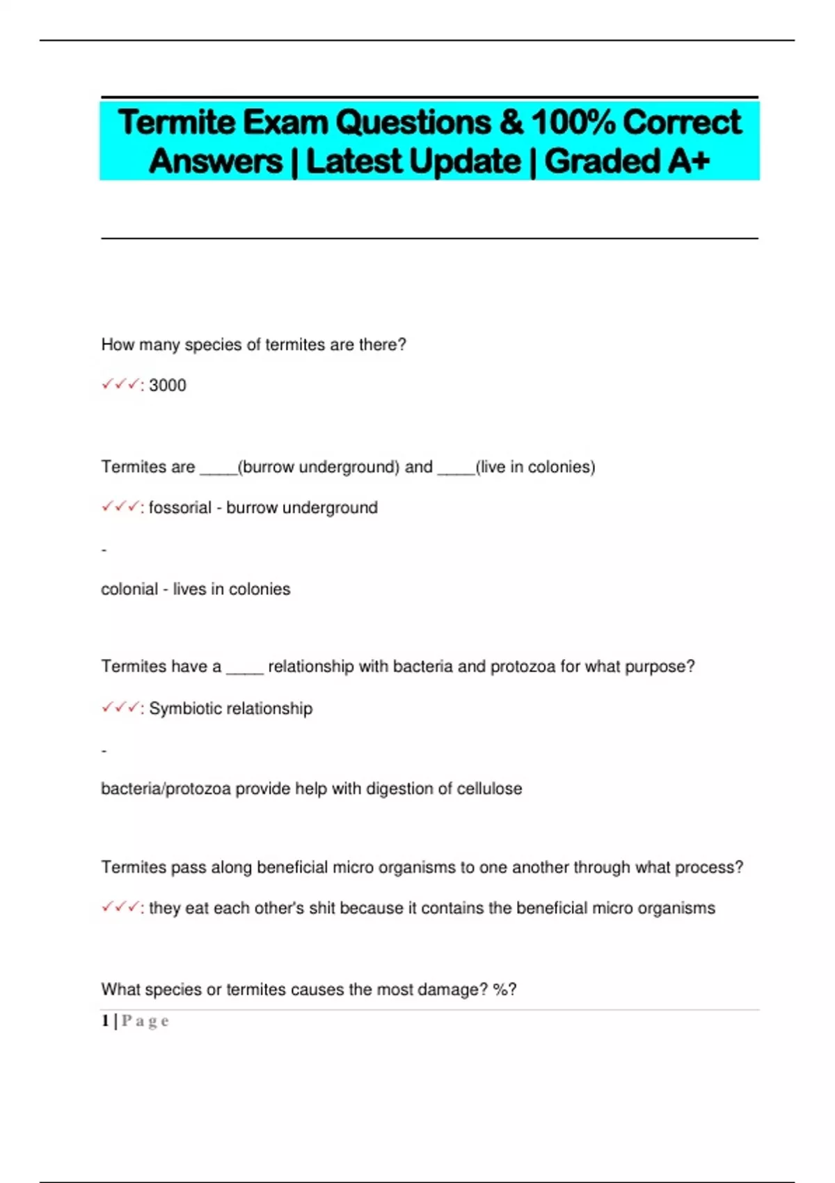 Termite Exam Questions & 100% Correct Answers | Latest Update | Graded A+