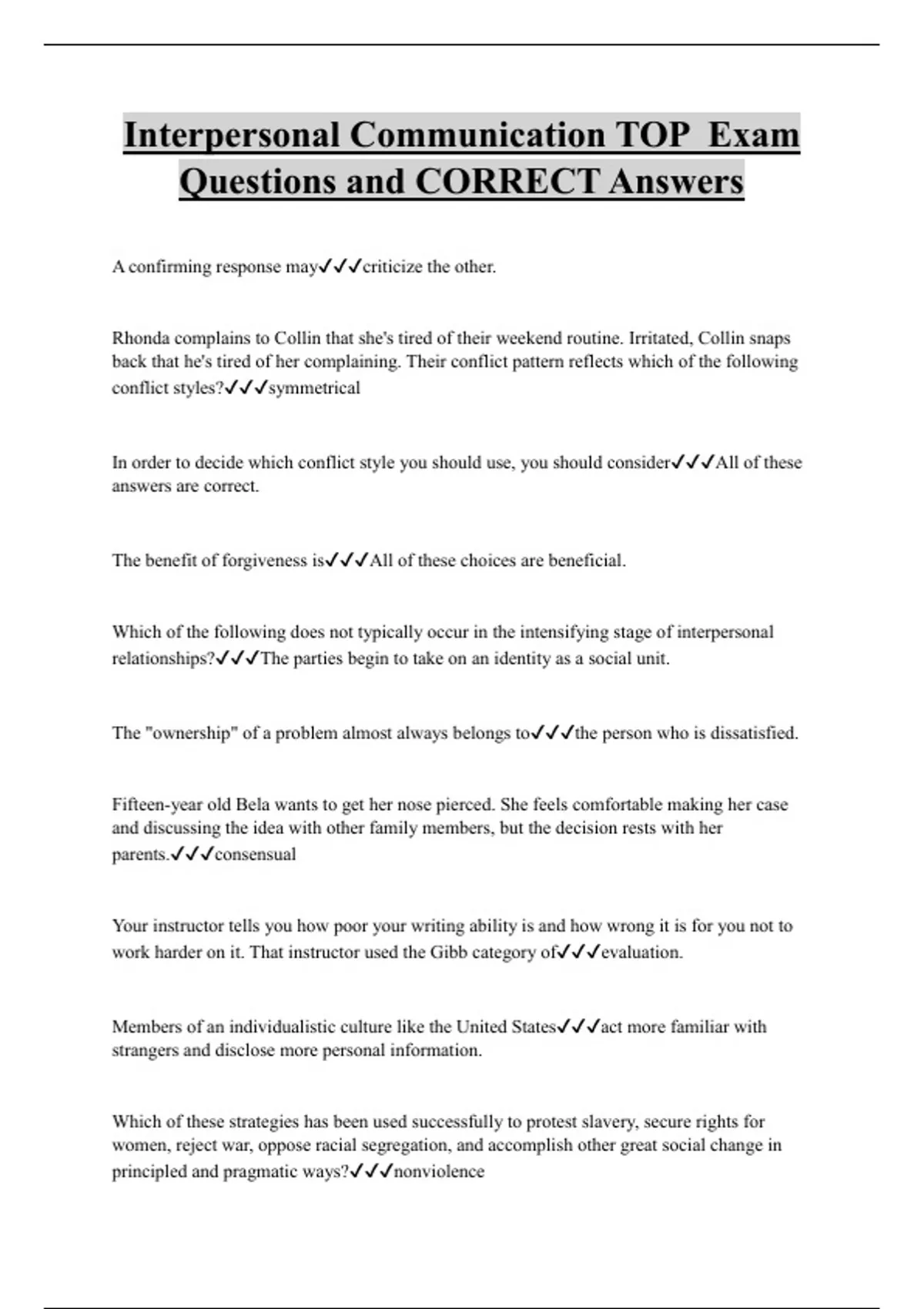 Interpersonal Communication TOP Exam Questions and CORRECT Answers