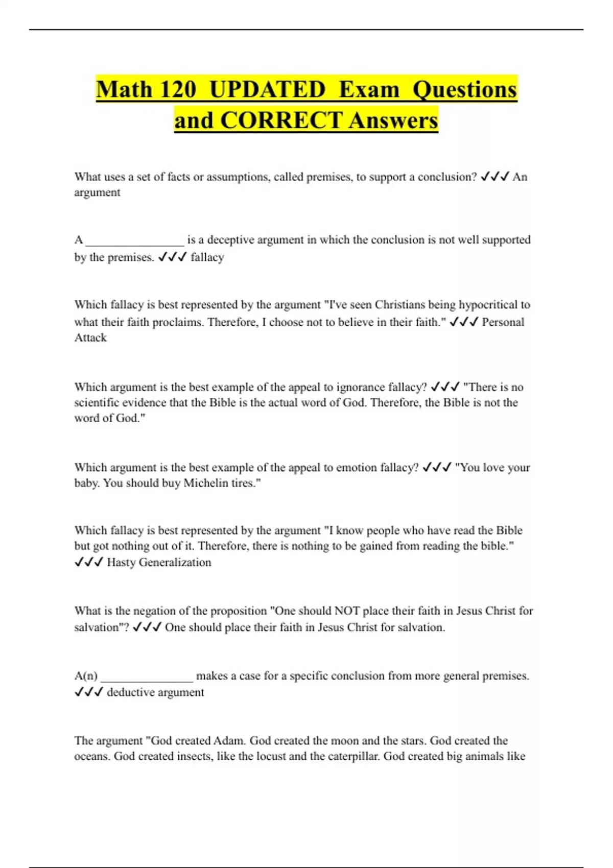 Math 120 UPDATED Exam Questions and CORRECT Answers