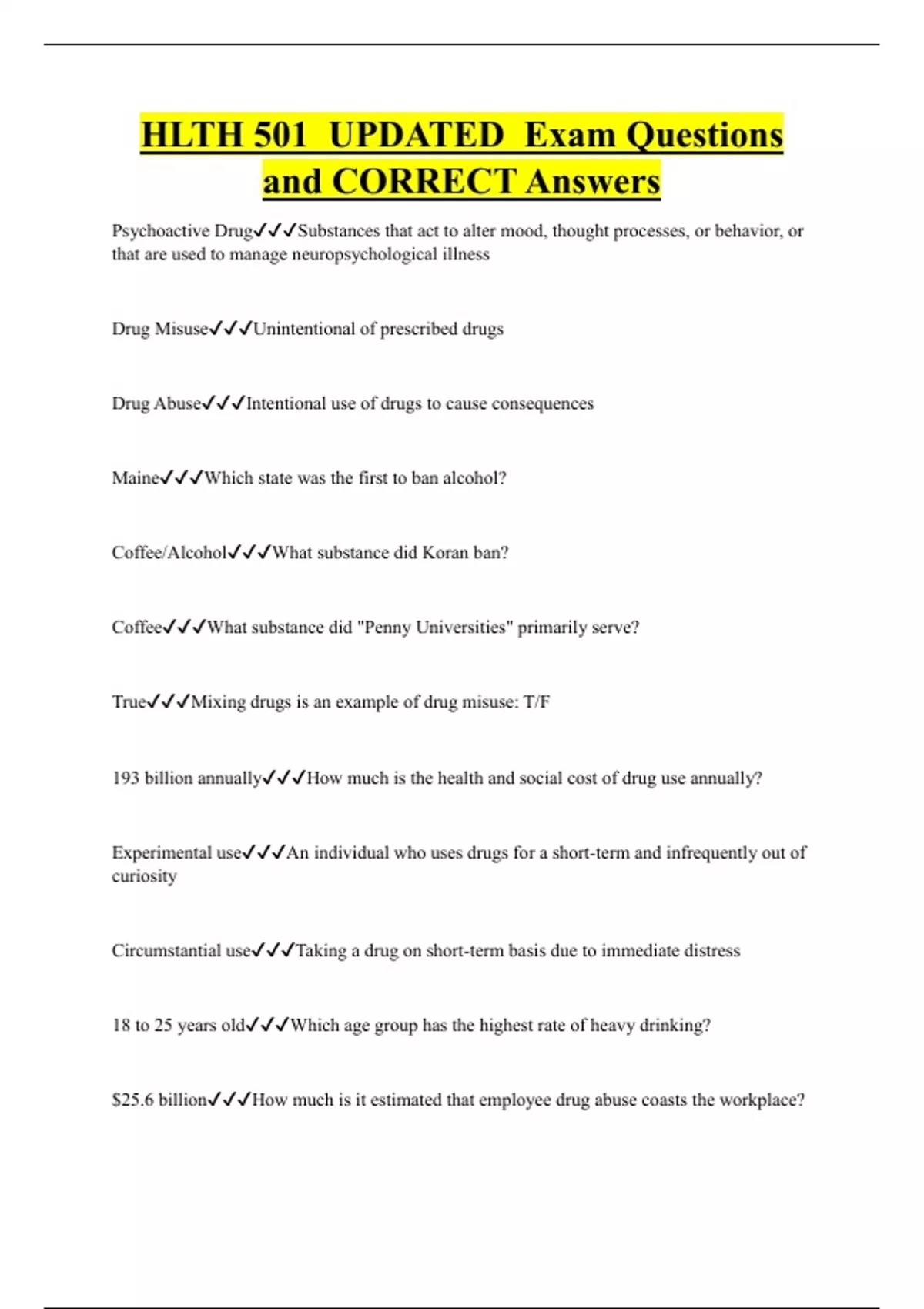 HLTH 501 UPDATED Exam Questions and CORRECT Answers