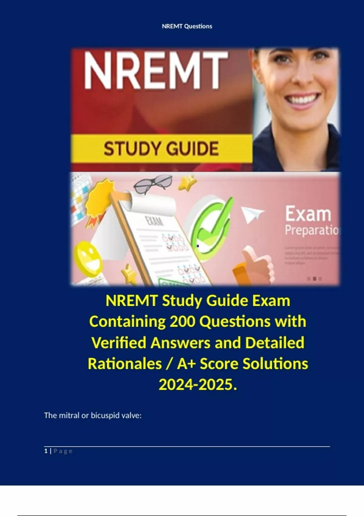 NREMT Study Guide Exam Containing 200 Questions with Verified Answers and Detailed Rationales / A+ Score Solutions .