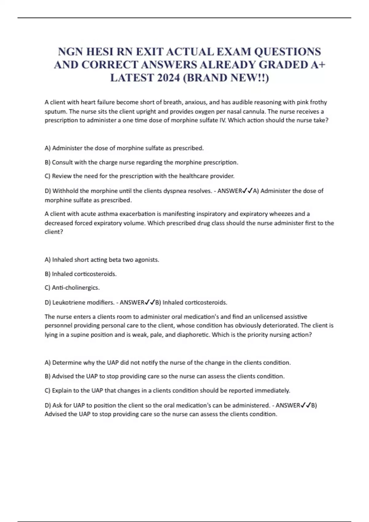 ngn hesi rn exit actual exam questions and correct