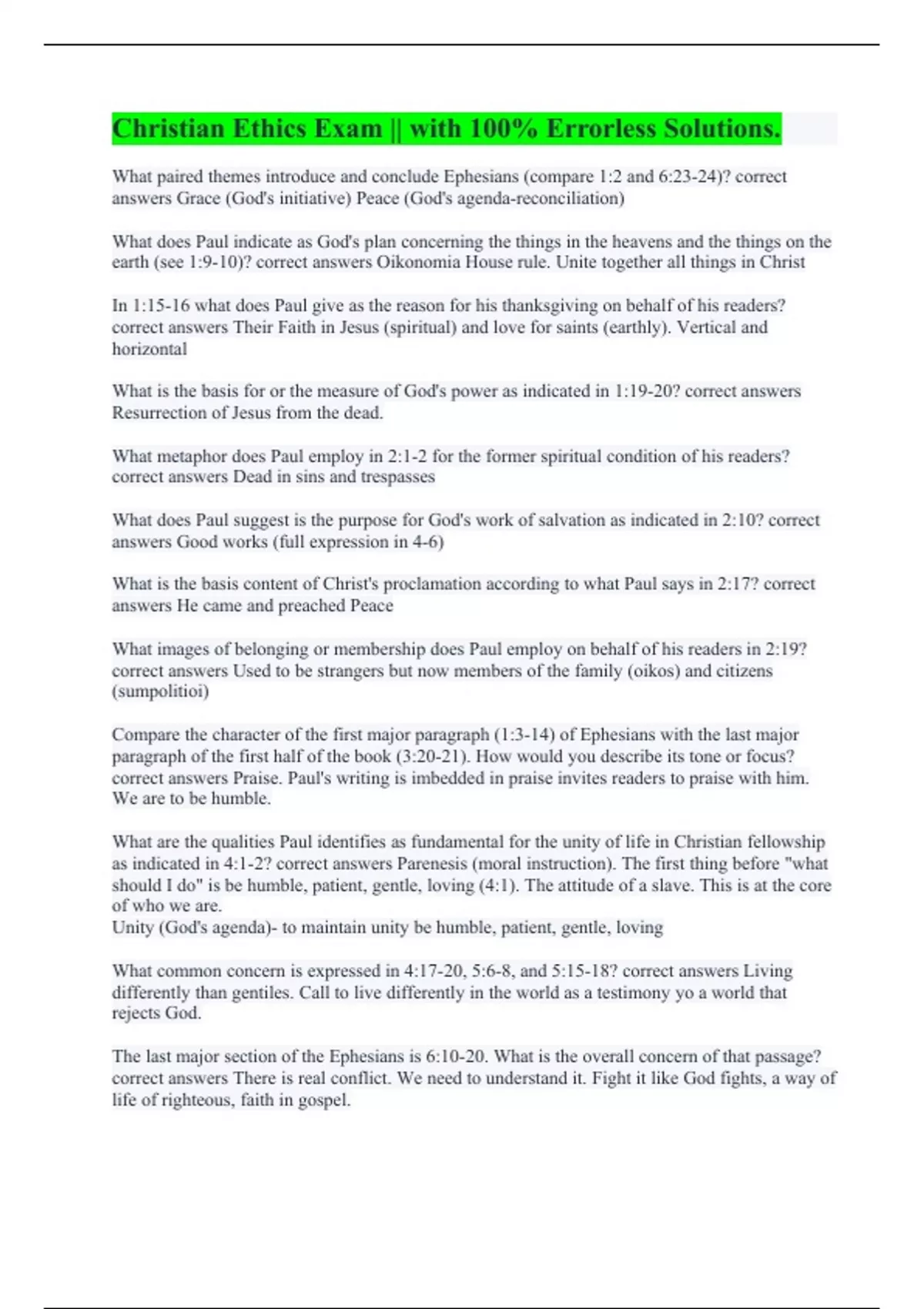 Christian Ethics Exam || with 100% Errorless Solutions.