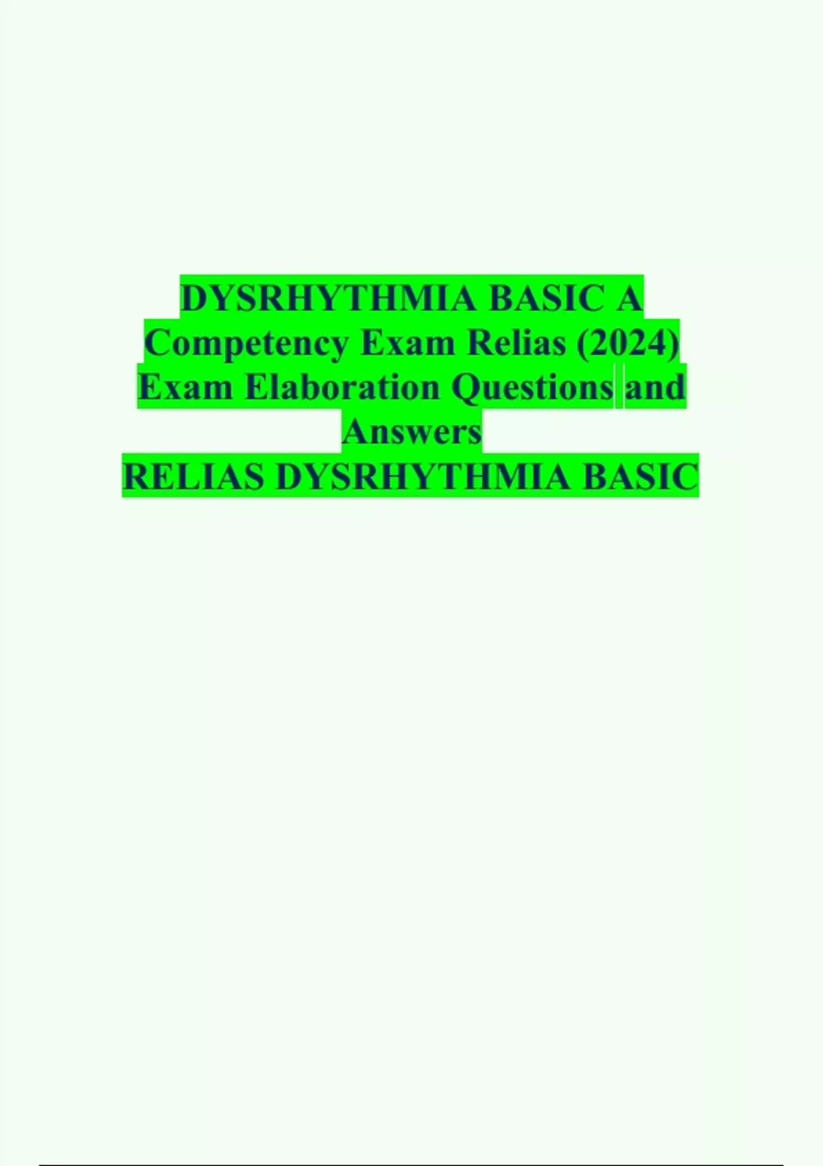 DYSRHYTHMIA BASIC A Competency Exam Relias (2024) Exam Elaboration Questions and Answers RELIAS DYSRHYTHMIA BASIC