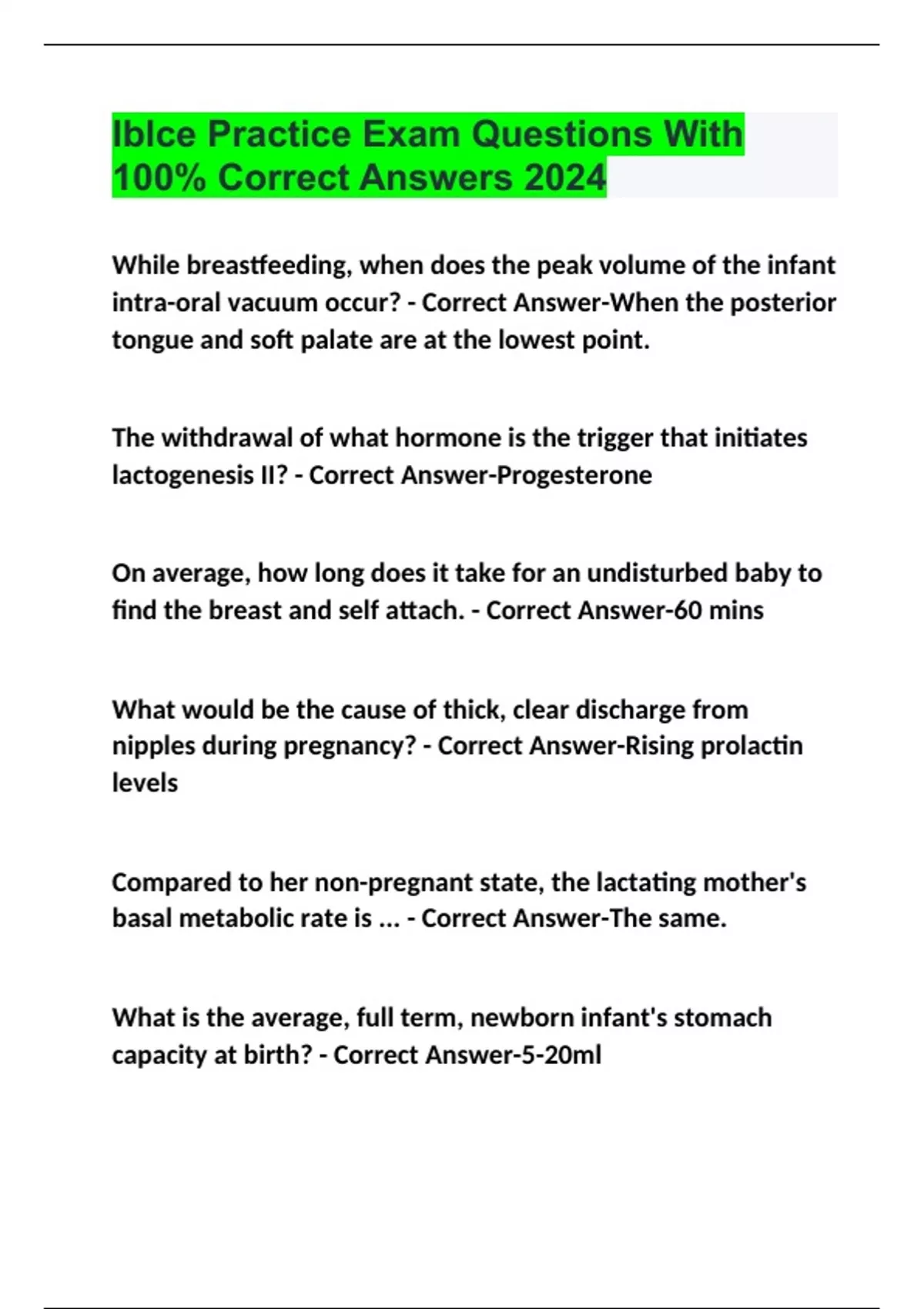 Iblce Practice Exam Questions With 100% Correct Answers 2024