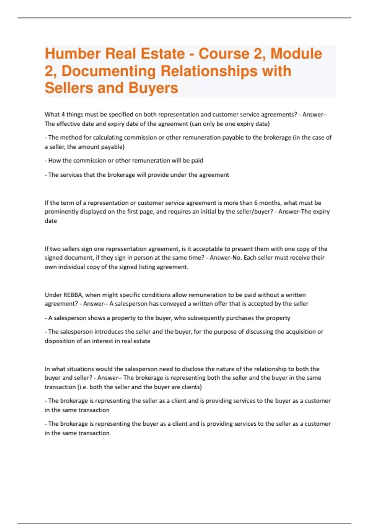 Humber Real Estate - Course 2, Module 2, Documenting Relationships with Sellers and Buyers