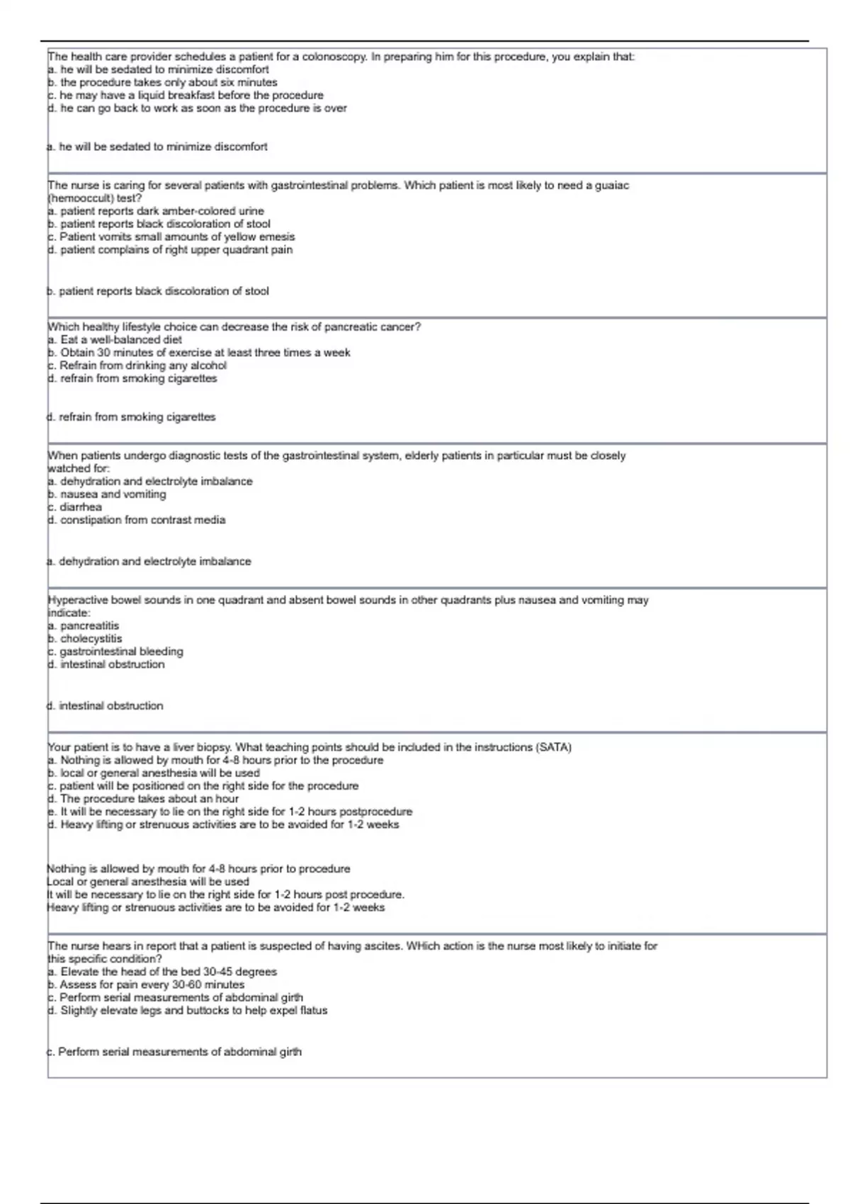 gastrointestinal disorders nclex questions
