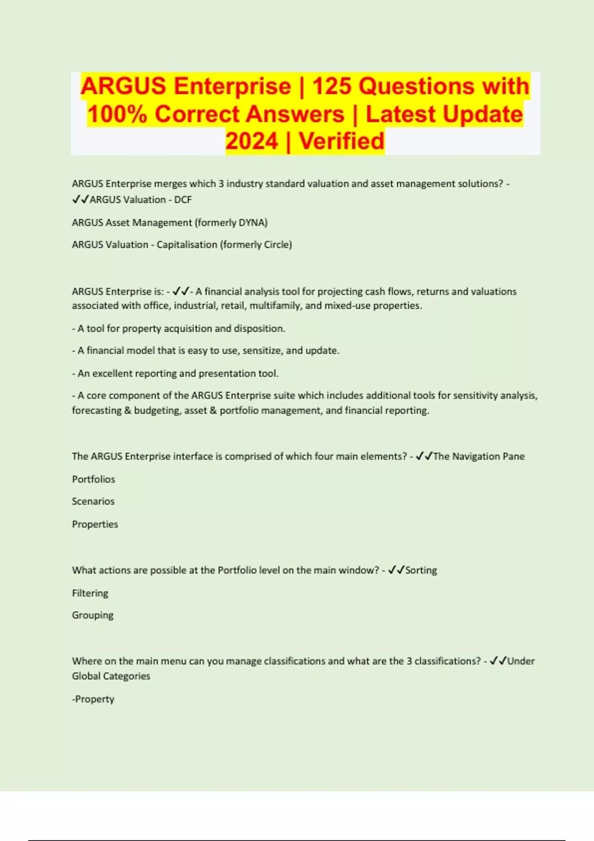 ARGUS Enterprise | 125 Questions with 100% Correct Answers | Latest Update 2024 | Verified