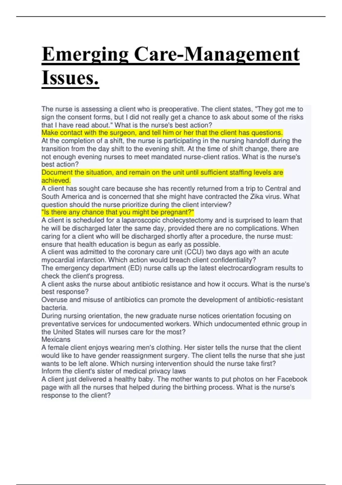 Emerging Care-Management Verified Instructor Notes for Exam Mastery