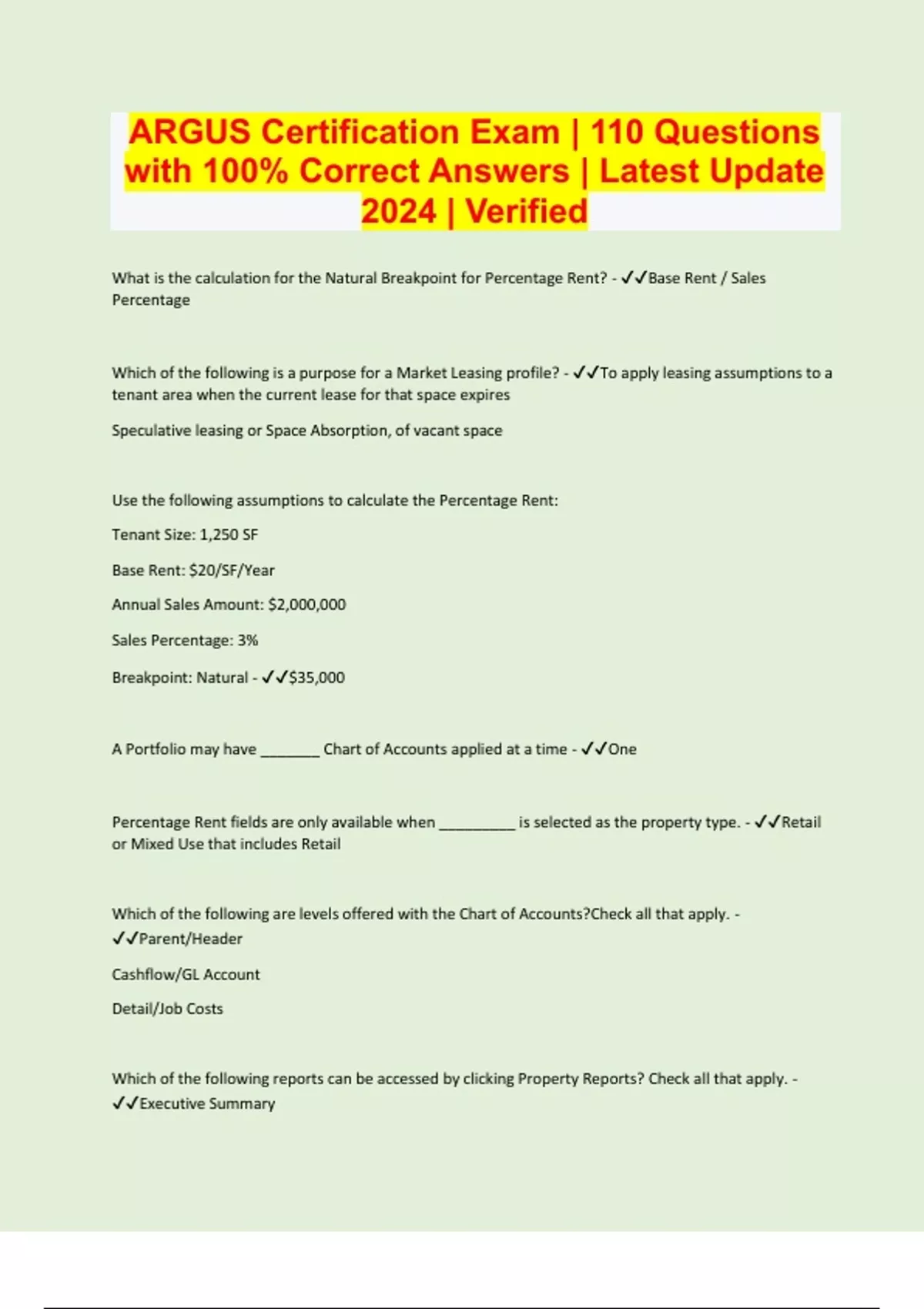 ARGUS Certification Exam | 110 Questions with 100% Correct Answers | Latest Update 2024 | Verified