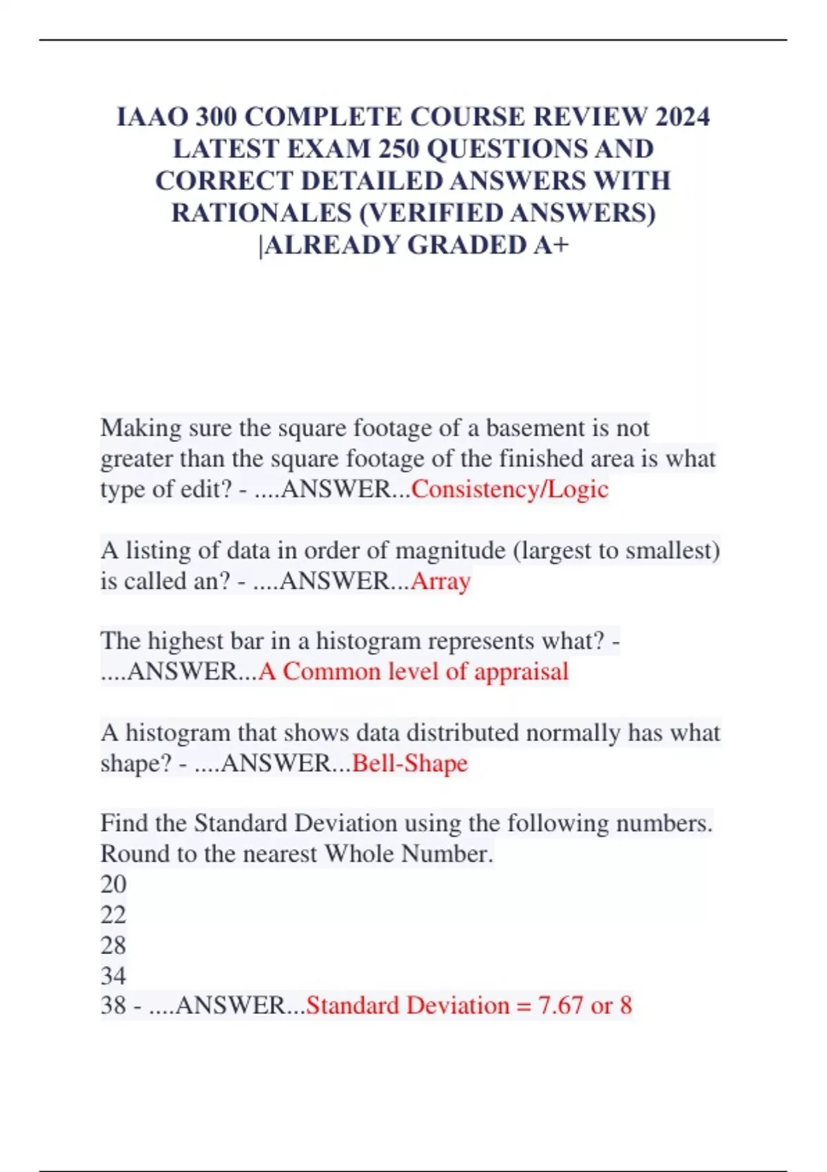 IAAO 300 COMPLETE COURSE REVIEW 2024 LATEST EXAM 250 QUESTIONS AND CORRECT DETAILED ANSWERS WITH RATIONALES (VERIFIED ANSWERS) |ALREADY GRADED A+