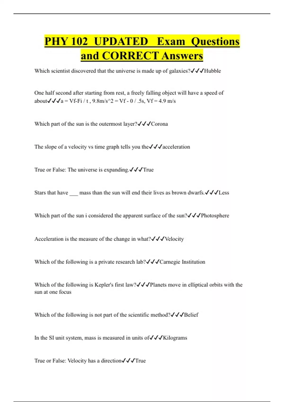 PHY 102 UPDATED Exam Questions and CORRECT Answers