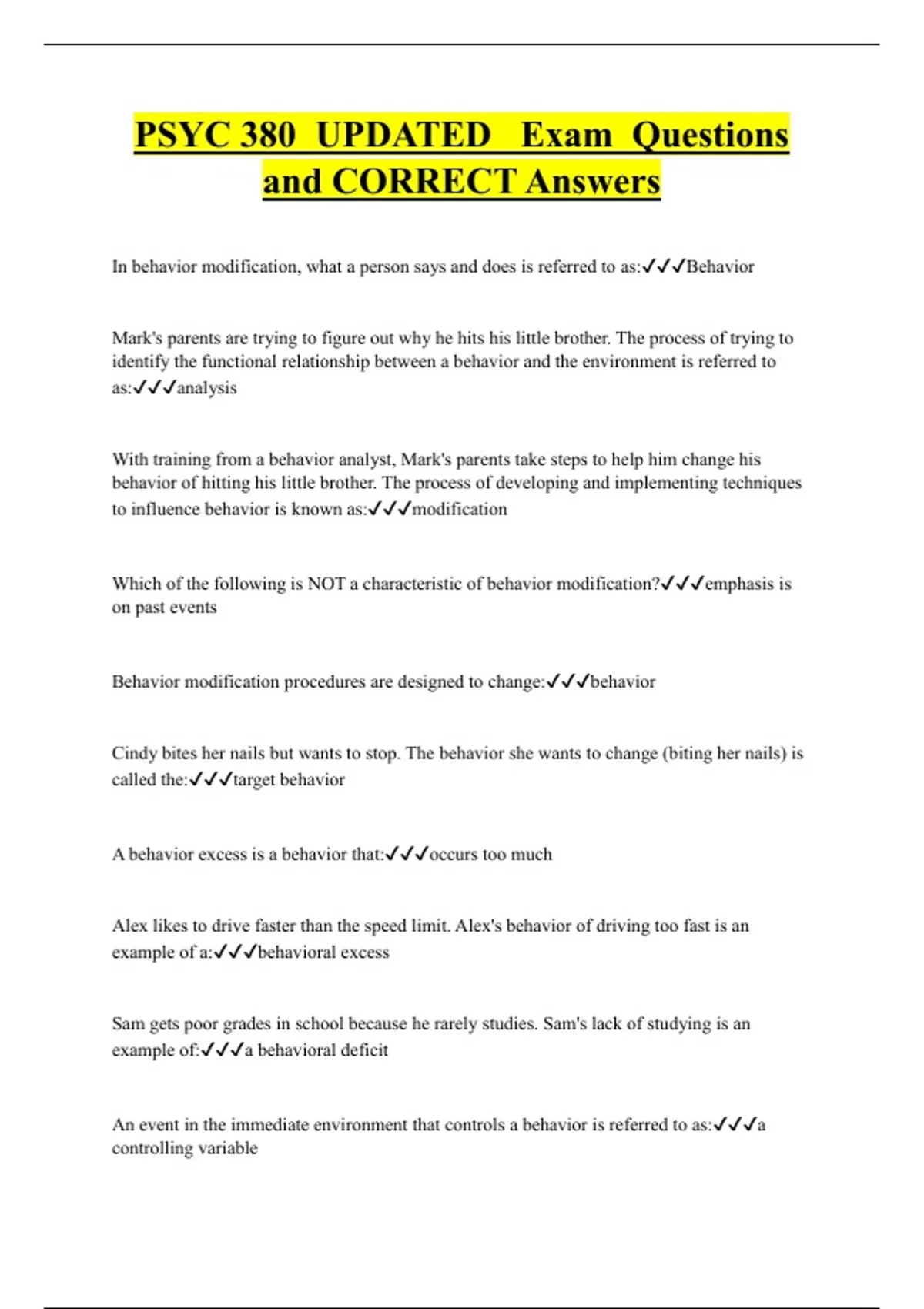 PSYC 380 UPDATED Exam Questions and CORRECT Answers