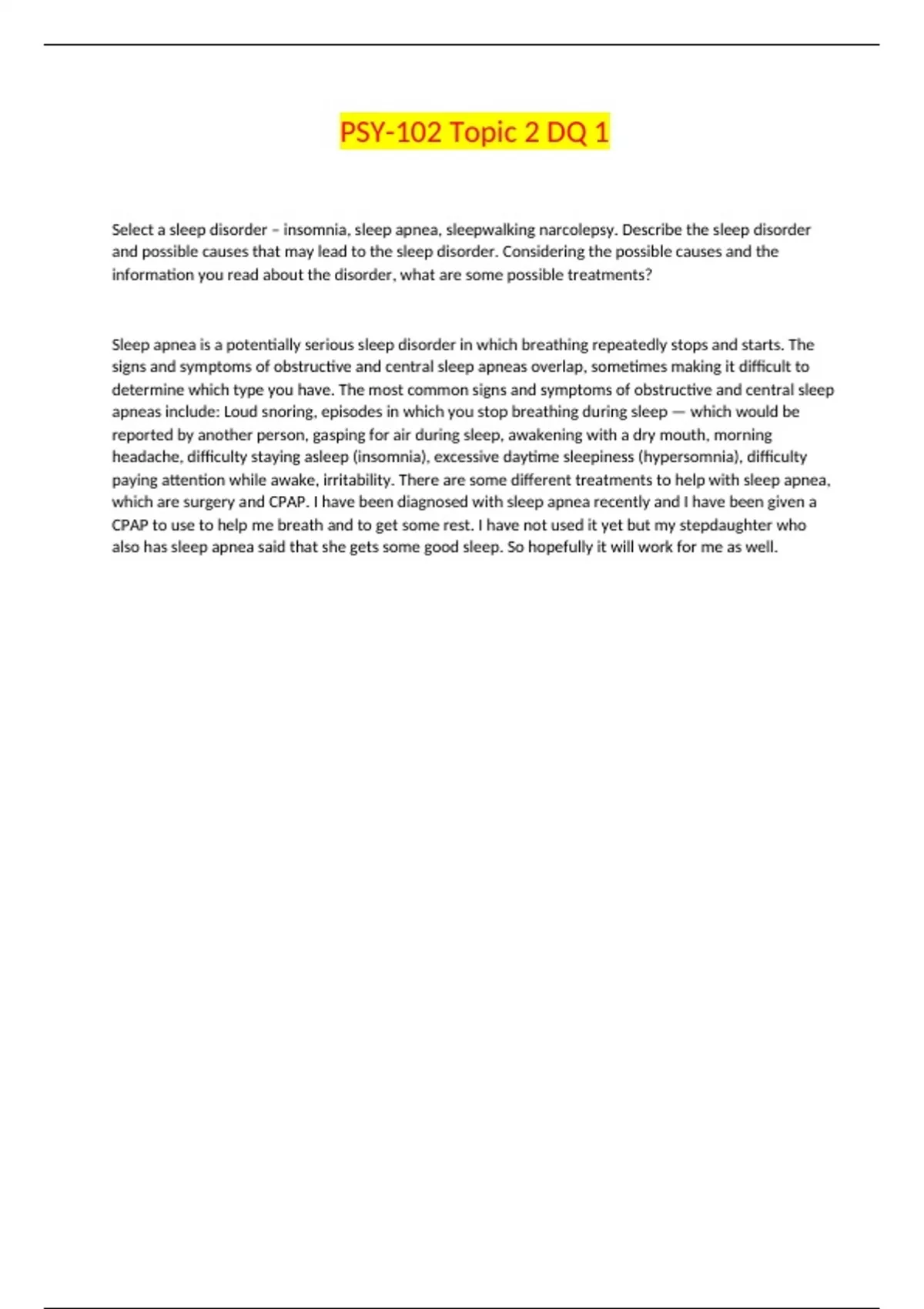 Select a sleep disorder – insomnia, sleep apnea, sleepwalking narcolepsy. Describe the sleep disorder
