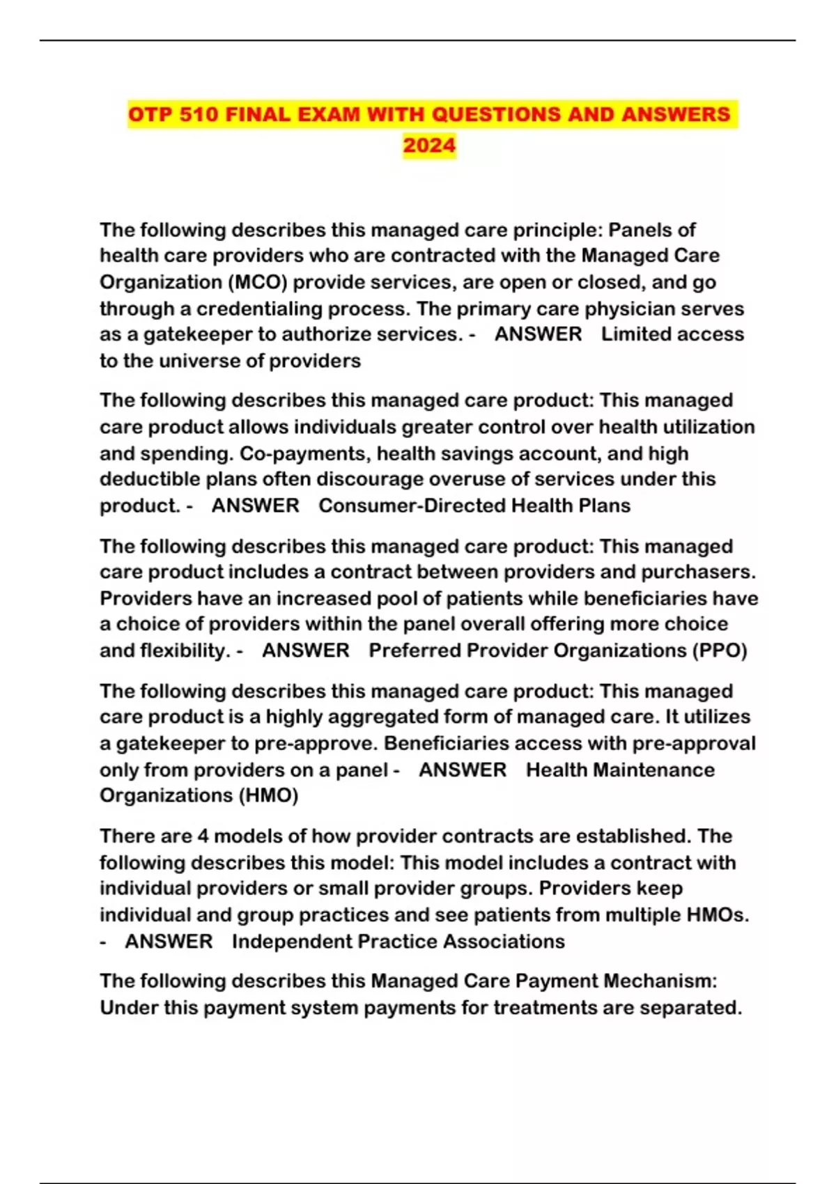 otp 510 final exam with questions and answers 2024
