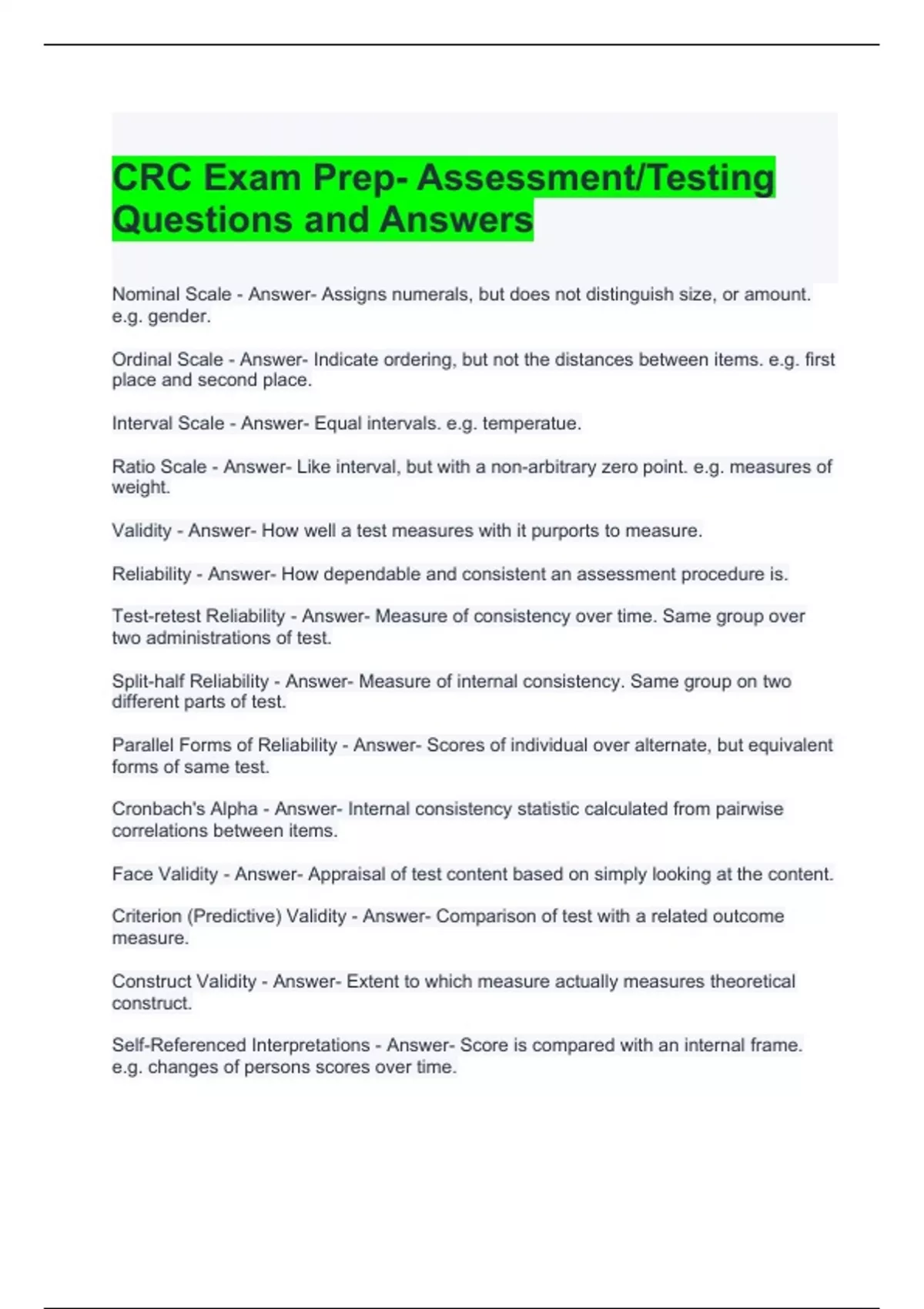 CRC Exam Prep- Assessment-Testing Questions and Answers 2024
