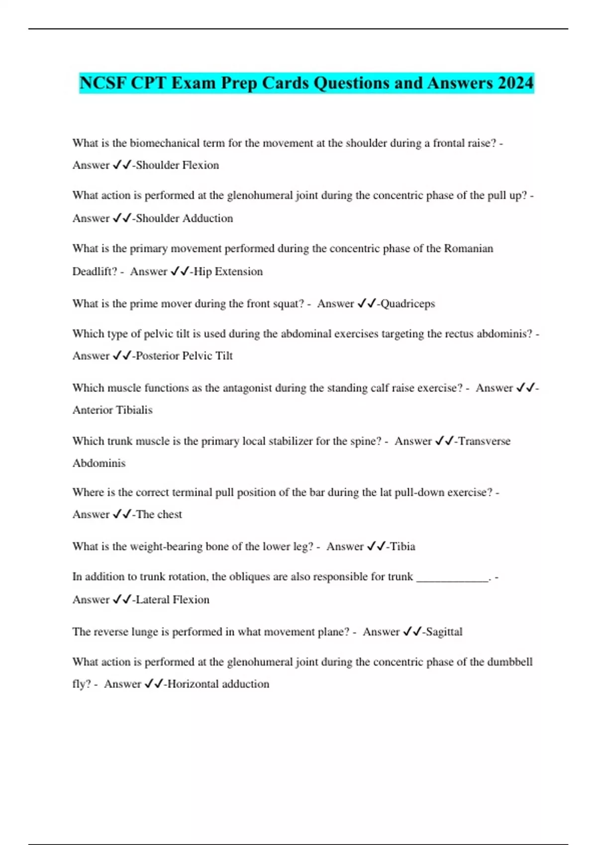 NCSF CPT Exam Prep Cards Questions and Answers 2024