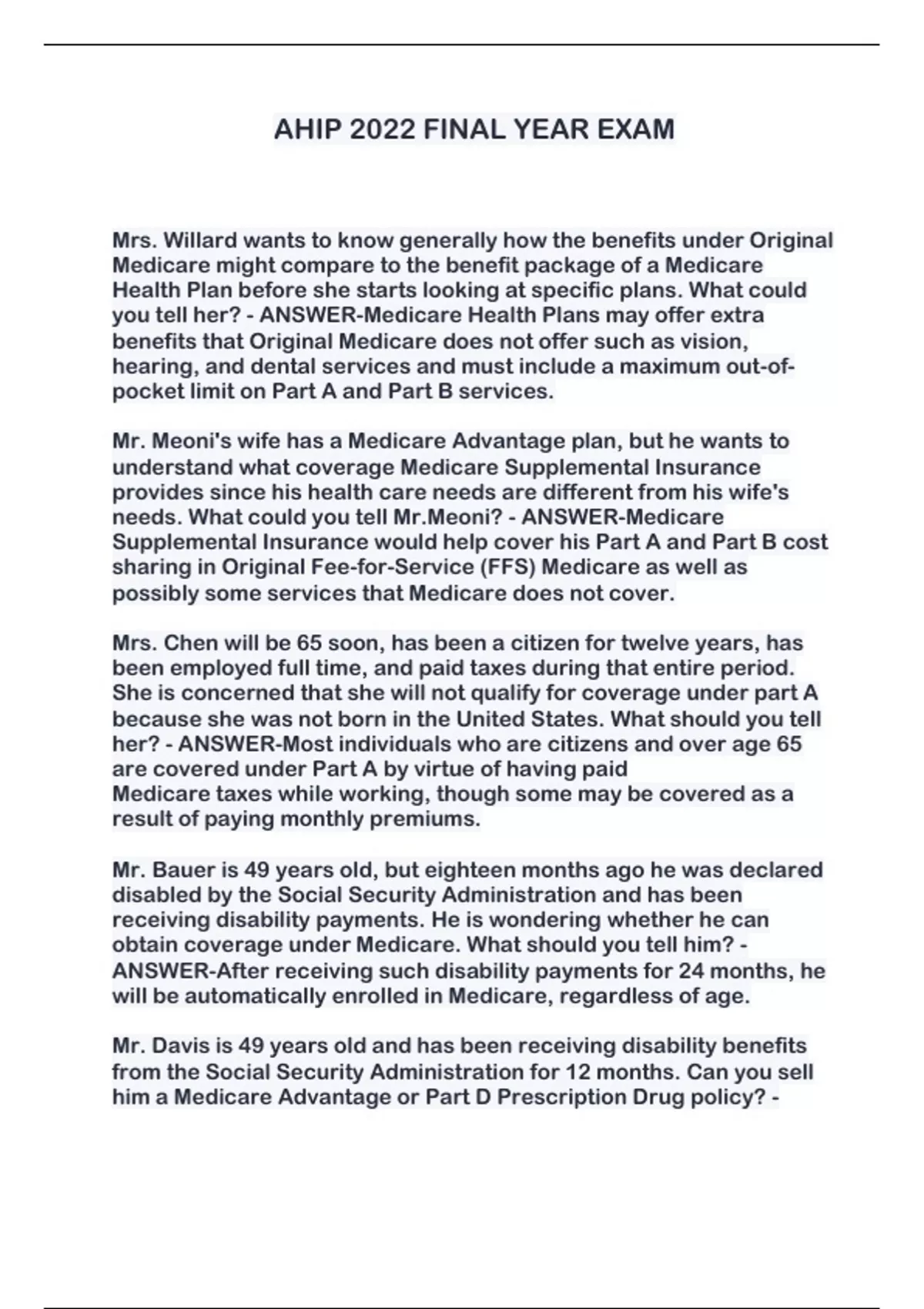 AHIP 2022 FINAL YEAR EXAM