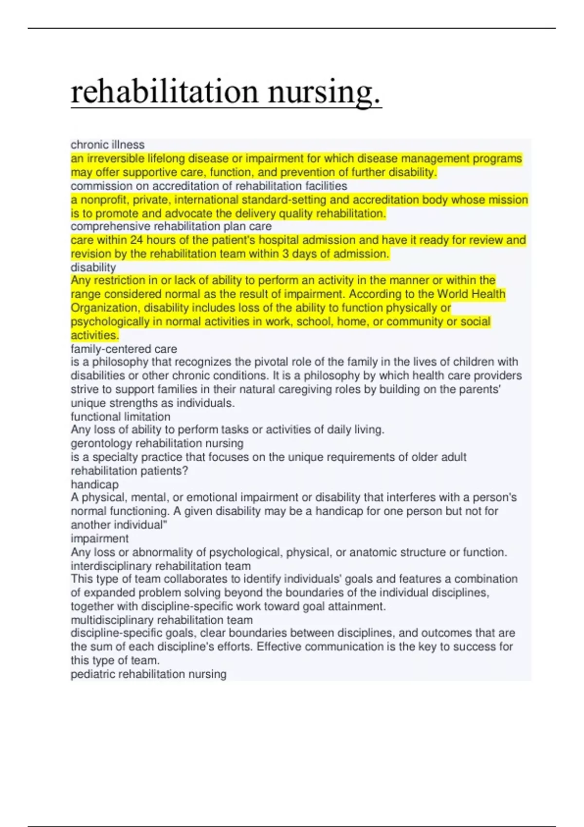 rehabilitation nursing. Verified Instructor Notes for Exam Confidence