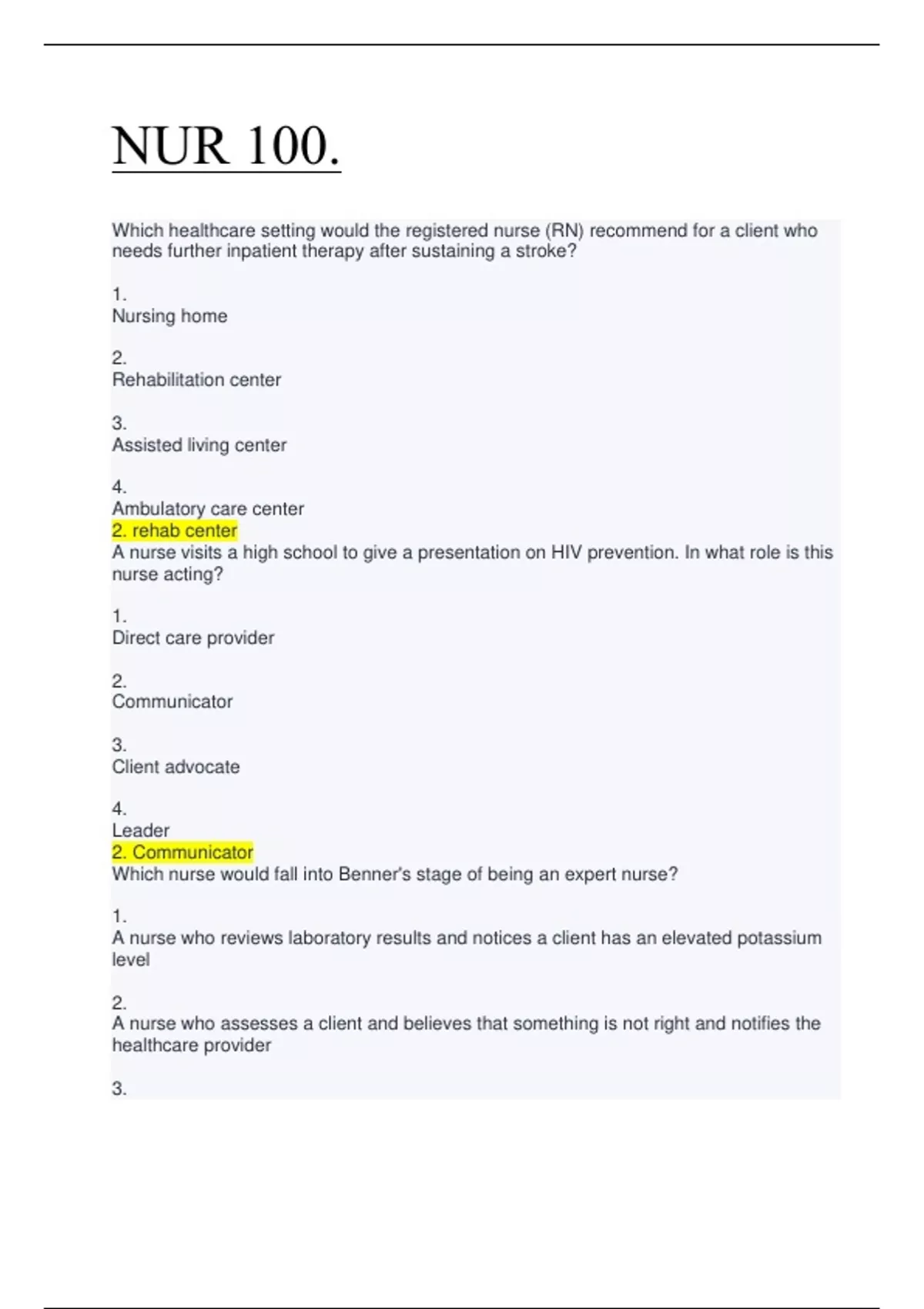 NUR 100. Exam Victory: Study Guides and Instructor Notes Provided
