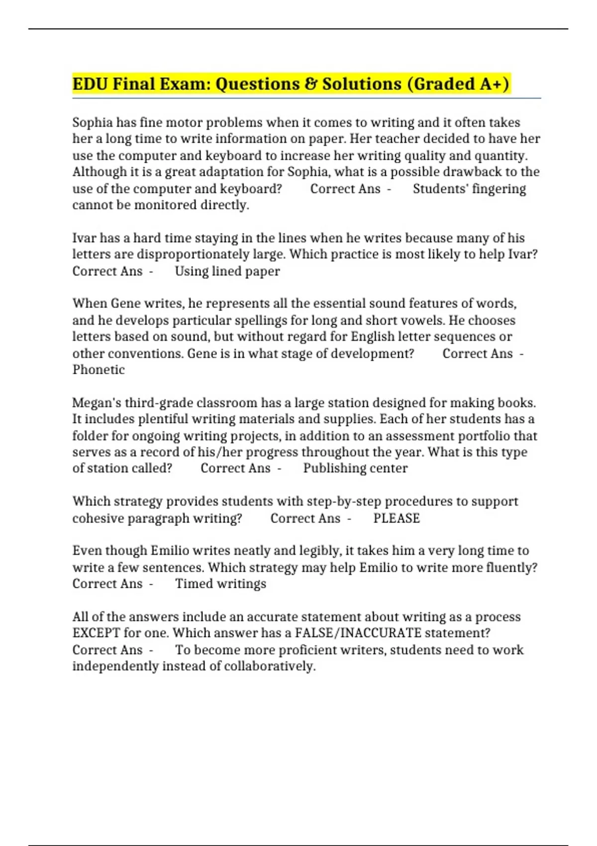EDU Final Exam: Questions & Solutions (Graded A+)