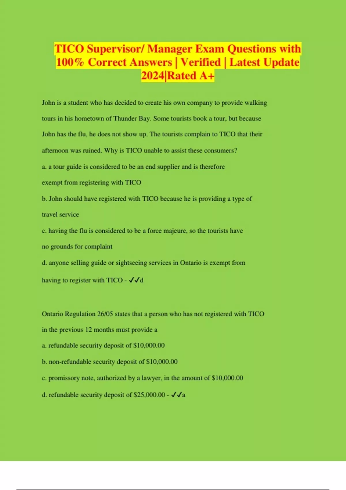 TICO Supervisor/ Manager Exam Questions with 100% Correct Answers | Verified | Latest Update 2024|Rated A+