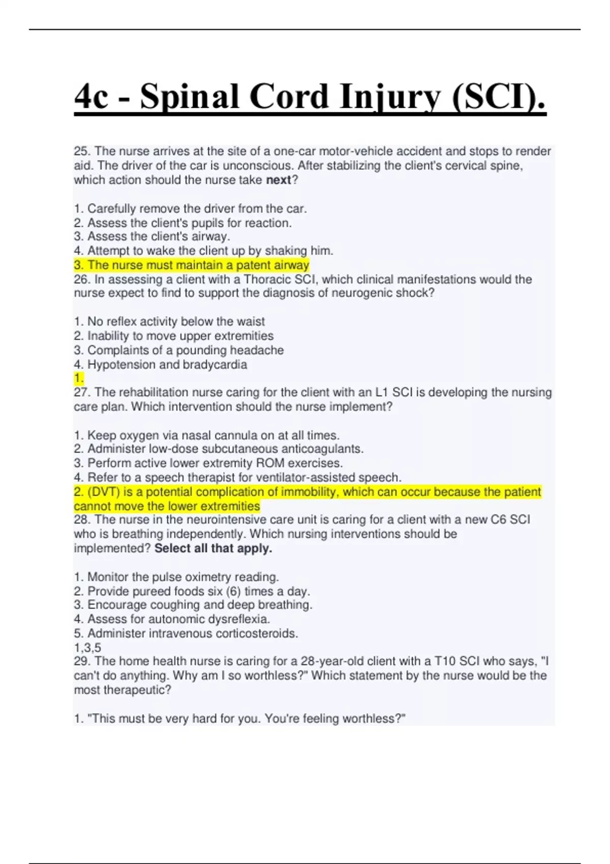 4c - Spinal Cord Injury (SCI). Verified Study Resources for All Testing Exams