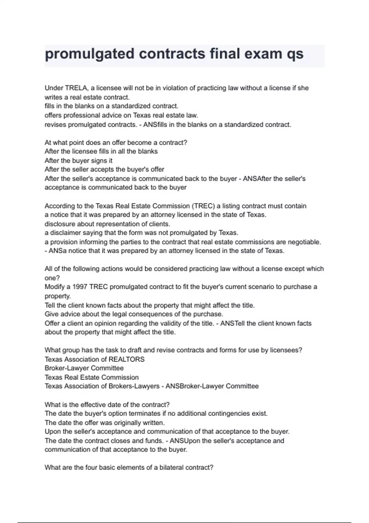 promulgated contracts final exam qs questions and answers graded A+ 2024/2025