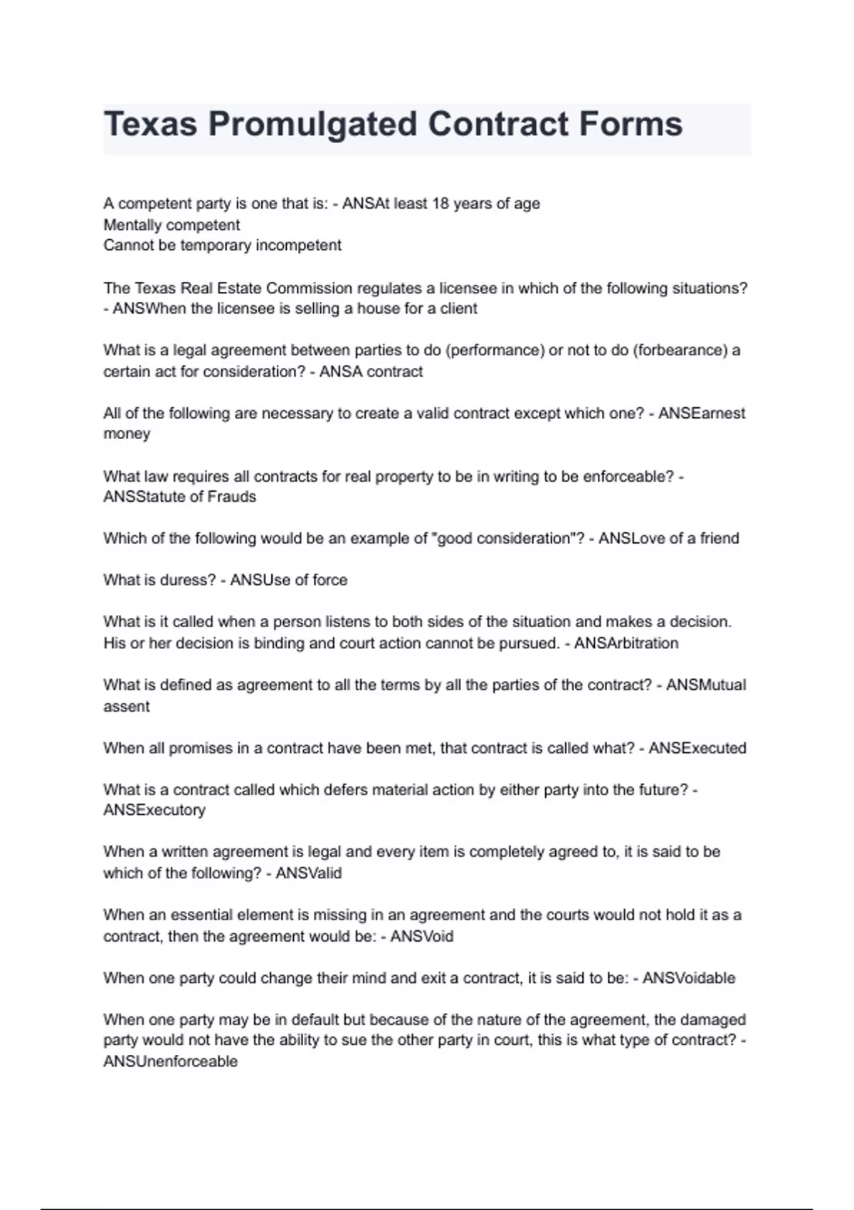 Texas Promulgated Contract Forms questions and answers graded A+ 2024/2025